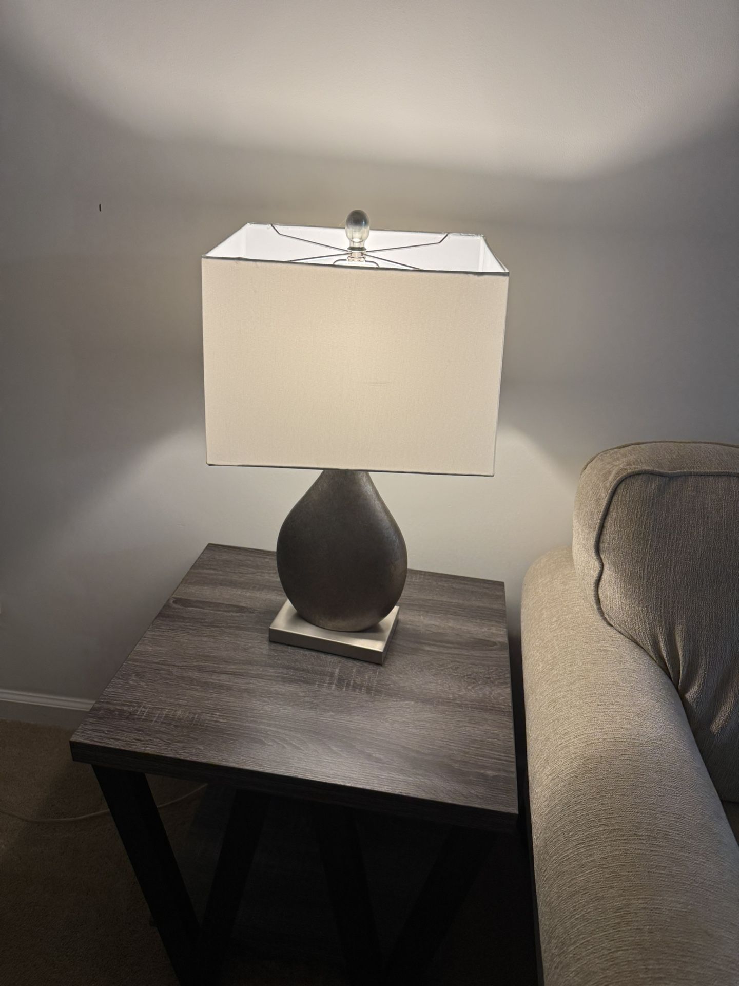 Selling a beautiful pair of modern table lamps. · Gold teardrop bases (heavy and high quality) · Square white shades · Includes bulbs · Original price: $100 each. Selling both for only $50. Perfect condition. Cash only. Please Habla español? ¡Sí, contáctame!