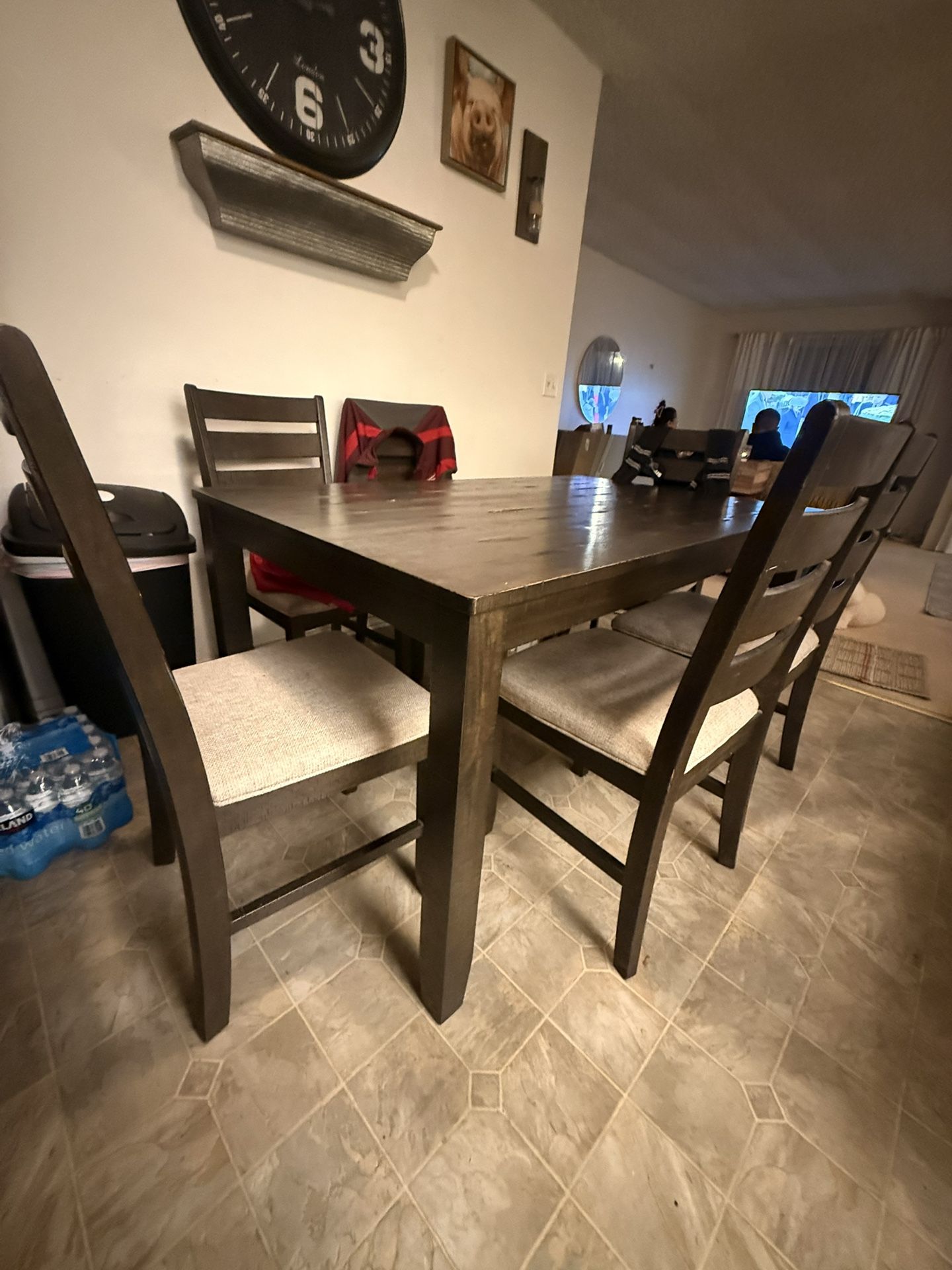 Normal wear and tear- 6 years. Top of table is a tad warped. Selling as is. Good fixer upper.