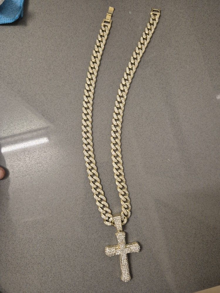 18 Inch Gold Chain With Iced Out Cross Charm