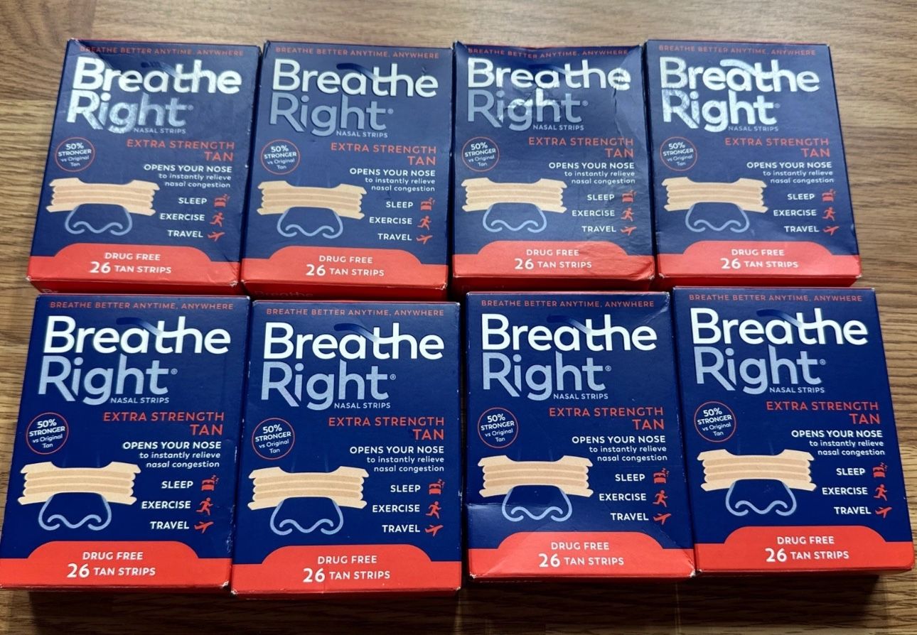 208 Breathe Right Nasal Strips Extra Strength Tan 8 x 26 Count Boxes-Exp 2029