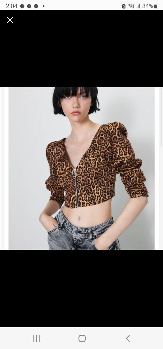 Nwot* Zara stretch animal print longsleeve crop top with functional front zipper. Size M Chest 19" flat armpit to armpit Length 15.5" from shoulder to hem