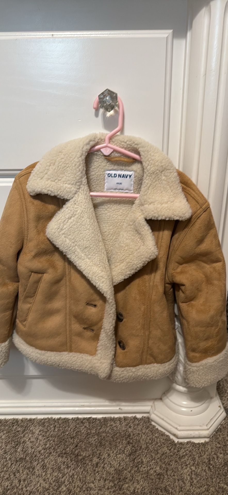 Size 5 Old Navy fleece lined suede coat. Worn once. Basically new. No blemishes