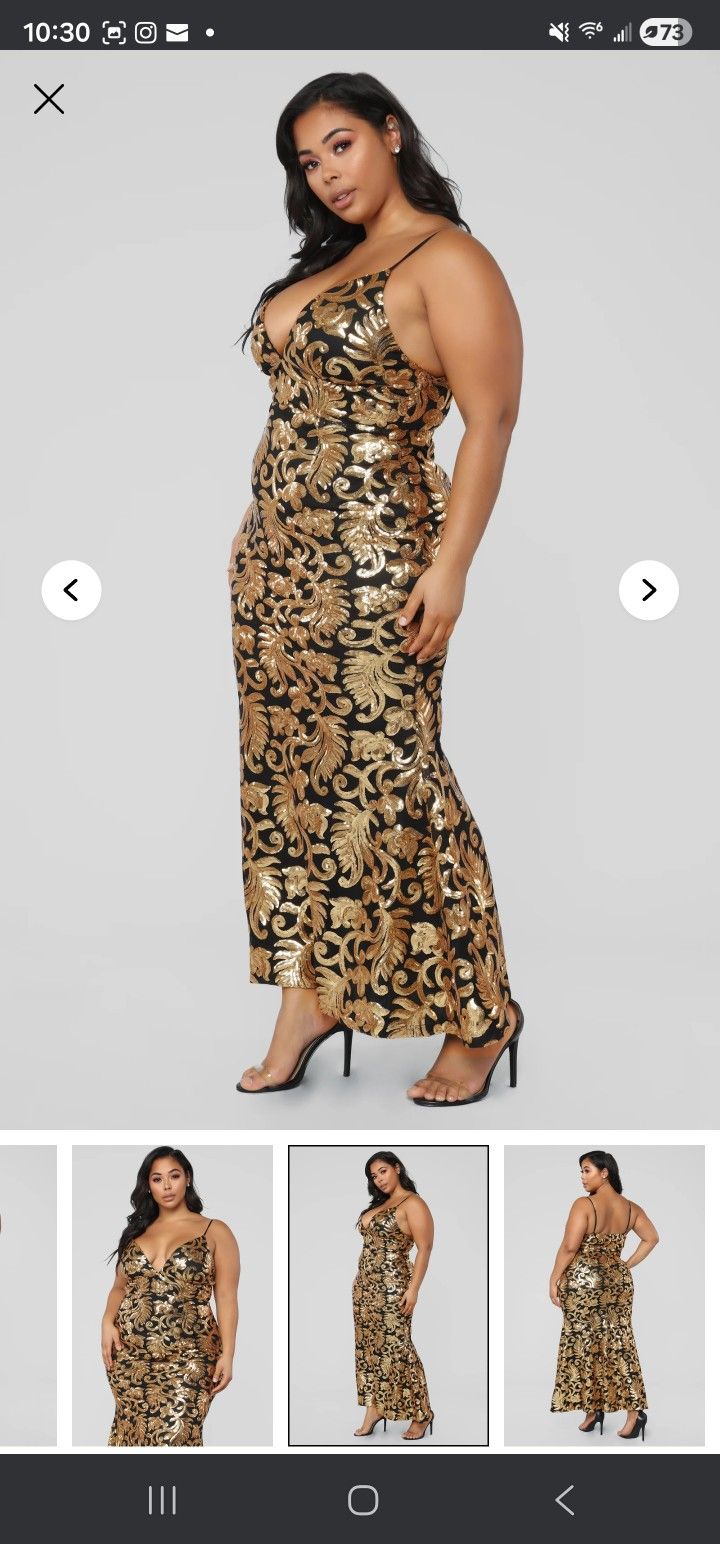 Fashion Nova 1X Sequence Blk & Gold Dress