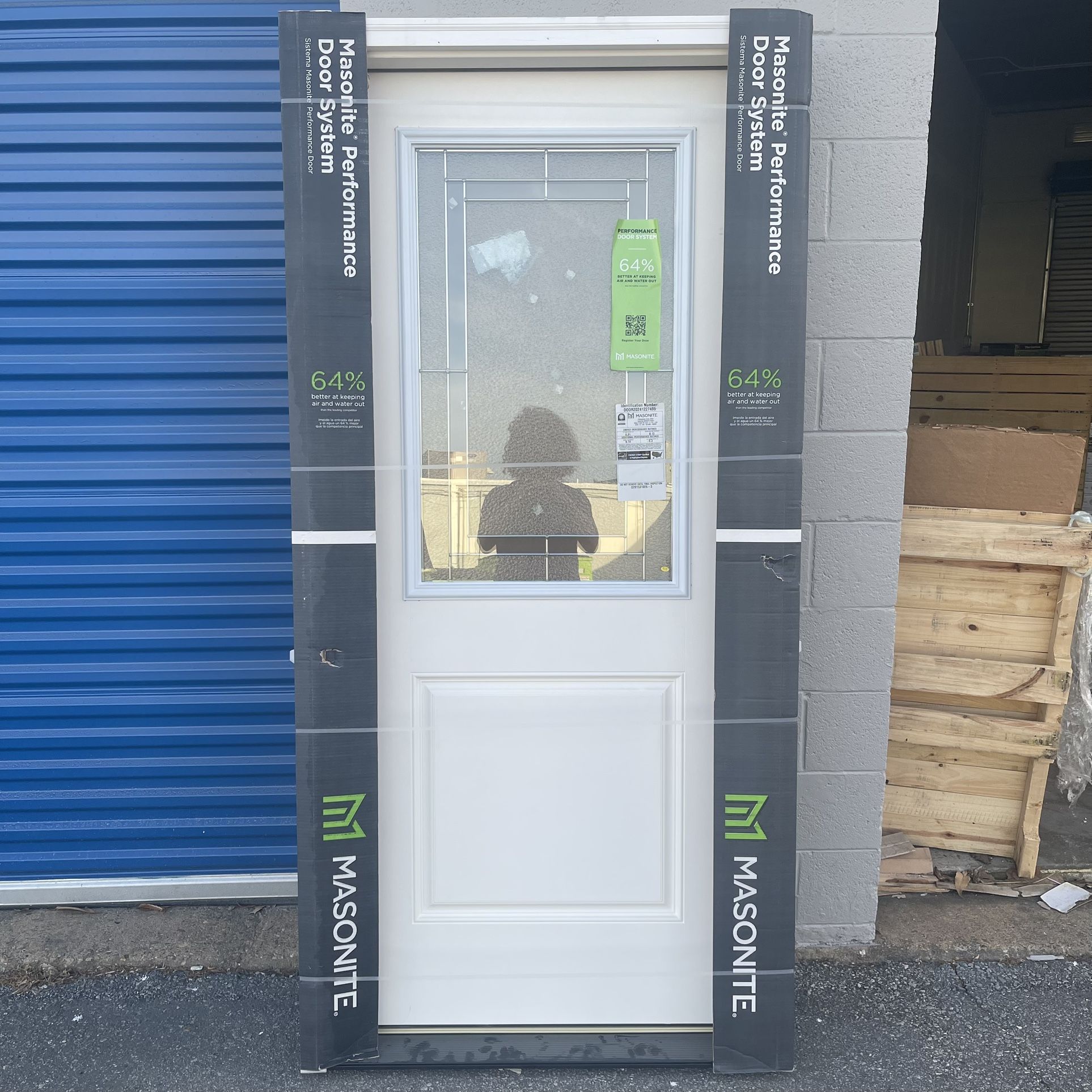3 left hand models available for this door w/brickmolding Typically retails for $629 at homedept, but I’m only asking $480 or best offer. Located in Virginia Beach, Va 23455 for pickup. Low-maintenance, high-performance fiberglass resists cracking, warping, splitting, and denting. Masonite's performance door system is 64% better at keeping air and water out than the leading competitor. Enhanced corner pads: stops water driven by wind from entering the home. 1/2 lite Focus decorative glass insert features silver caming. Self-adjusting Sill: Automatically adjusts when seasons or conditions change, providing advanced protection from leaks and drafts. Adaptive weather stripping: made of high-end, low wick memory foam that won't absorb moisture and stops air and water in its tracks. Fiberglass slab features an energy saving polyurethane core. Exterior door slab is double bored for lockset - sold separately. Decorative glass insert features a 1 in. triple pane tempered glass insulated assembly.