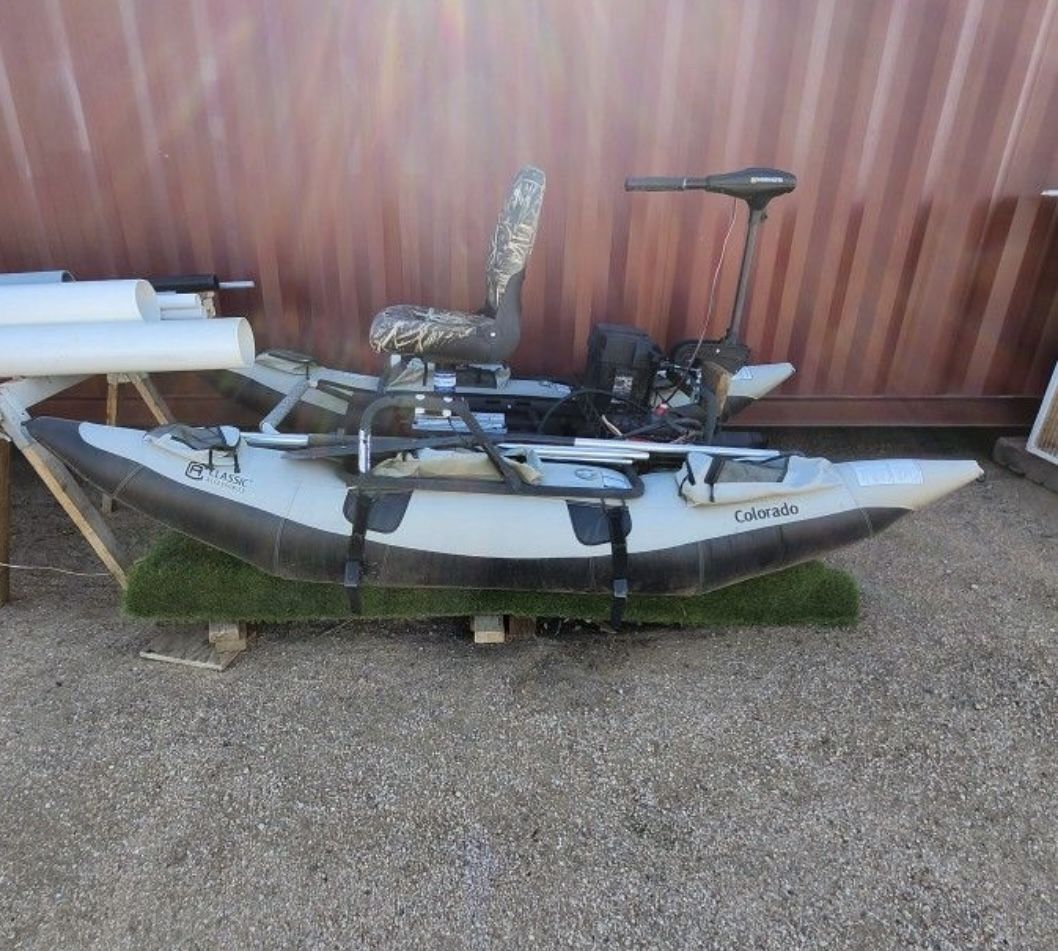 Like new, bought it used and only used it one time. Upgraded to a small John boat, just taking up space now. Come with Minn Kota 30 lb thrust 5 speed trolling motor. Seat swivels, folds down and you’re able to adjust it front and back.
