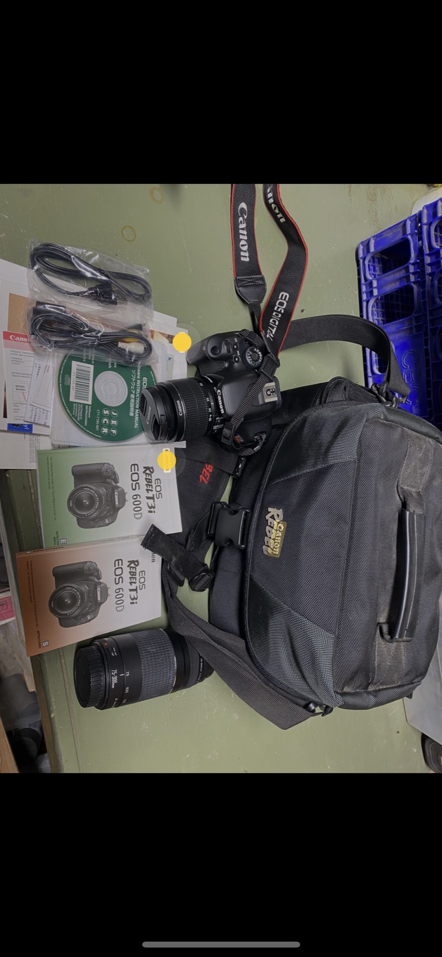 Canon wow t3i 600d and cannon zoom lens. Literally, neither have ever been used. It has all the cases, Manuel’s, and software. $250 or best offer