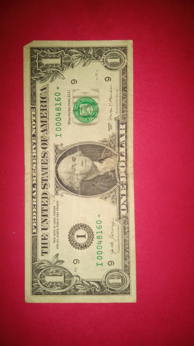 It's a star note USA one dollar bill made in 2007