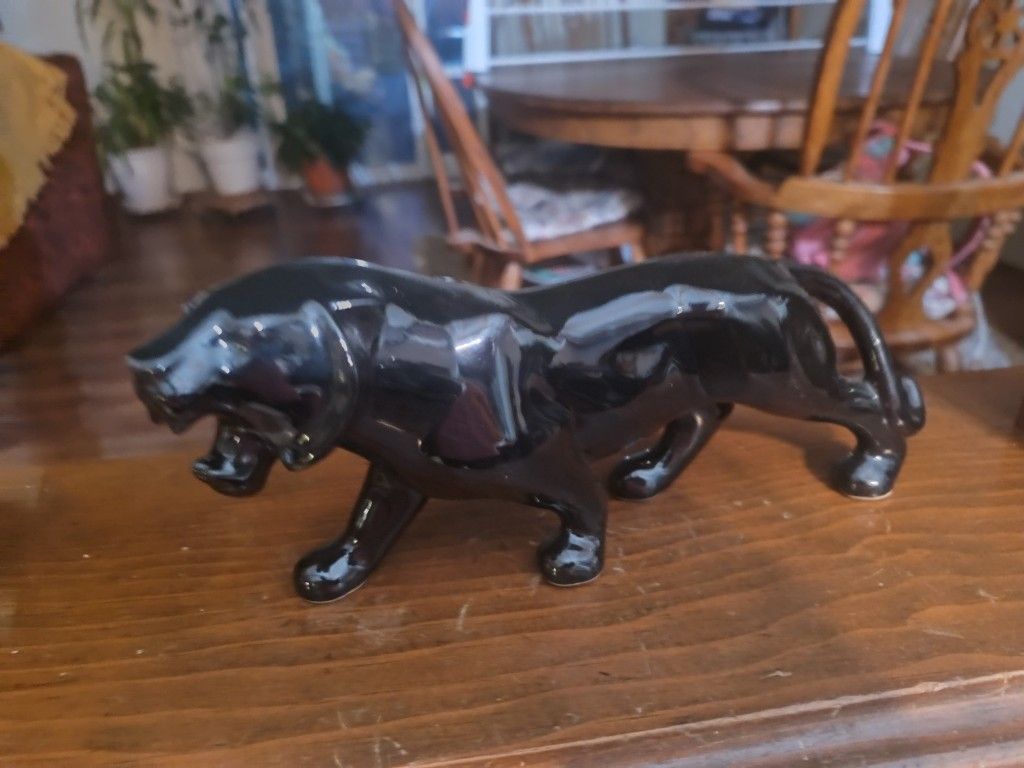 Beautiful 1950s Japanese Black Ceramic Jaguar