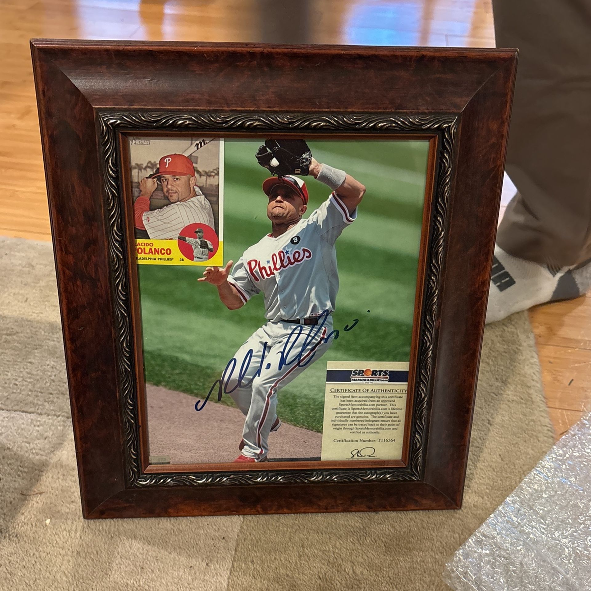 Authentic autographed Placido Polanco picture and baseball card.