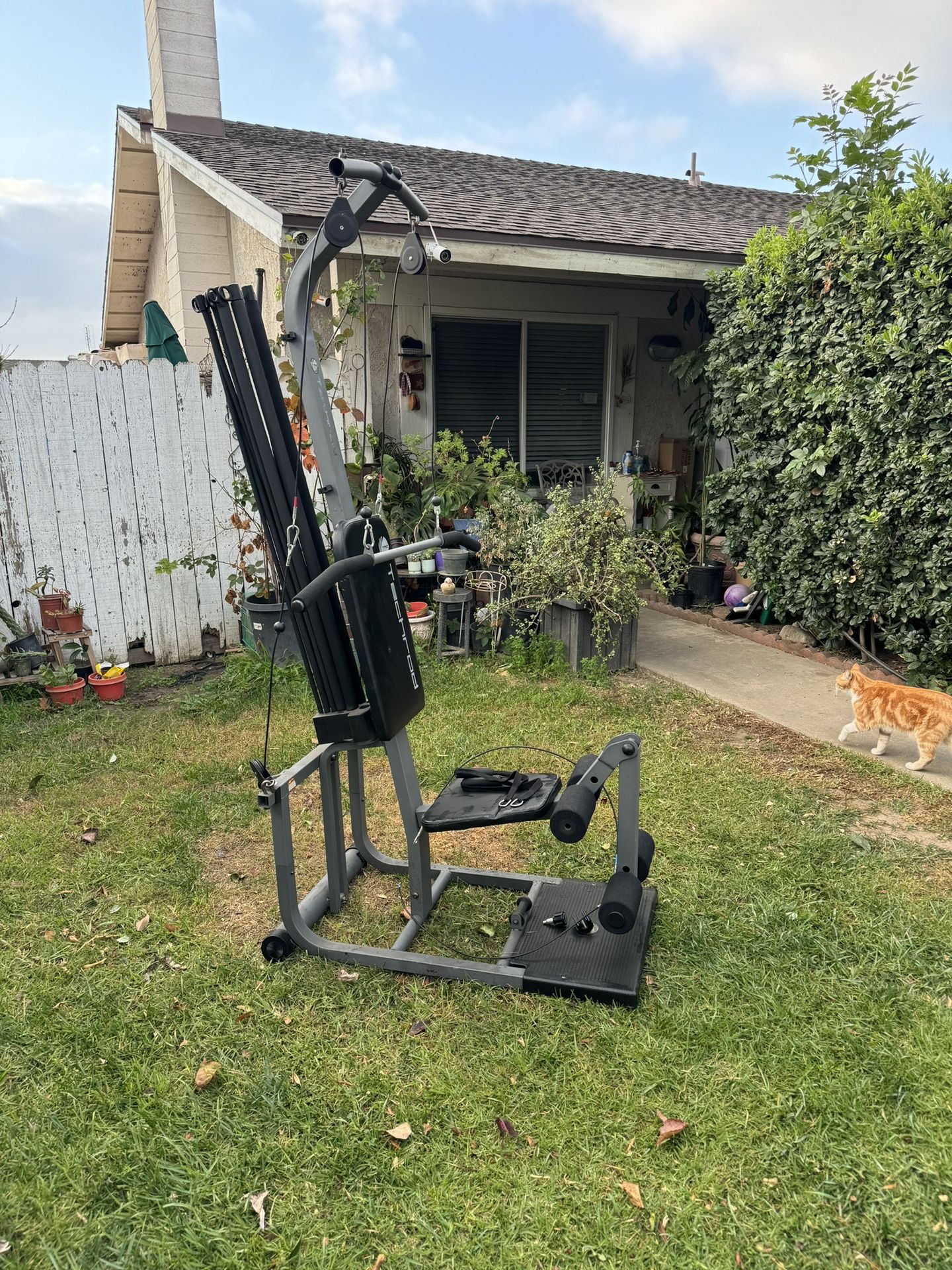 Similar to a bowflex machine includes pull-down bar and handles The Tech Rod TR-2 is a home fitness system by Impex. It uses flexible, metal rods as resistance, as opposed to weight plates. High and low cable pulleys offer dozens of exercises. Each pulley set consists of two individual pulleys, one on each side of the machine. You can use both sides together or work one side by itself. The TR-2 offers up to 100 lbs of resistance on each side. The upright bench has an attached leg developer to work your thighs. The maximum weight capacity of the TR-2 is 250 lbs GETTING STARTED: Always warm-up your muscles before exercising. Easy stretching (without bouncing) and light calisthenics, for several min-utes, are recommended to prepare your body. A "repetition" is defined as one complete movement from the starting posi-tion, through the full range of motion, and back to the starting position. A "set" is defined as a series of continuous repe titions. Start your exercise program conservatively. Select a resistance level for each exercise that is easily performed for the full range of your motion. Learn to feel your body's responses and change your program accordingly. The number of repetitions for each set should range between eight and fifteen. As a general rule, the lower the number of repetitions per.