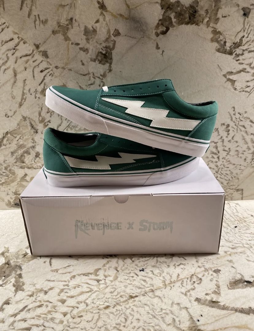 Revenge x Storm “Original Green” Multiple Sizes Brand New Guaranteed Authentic Sizes: 8M/9.5W 9M/10.5W 10M/11.5W 11M/12.5W 12M/13.5W Women's sizing will contain a "W" after the size listed Shoes are brand new in box (deadstock) All pairs are un-worn and pre-inspected before listing Can meet locally here in Mesa AZ or ship anywhere in the US for FREE Shoes will be shipped within 1 business day through USPS and tracking will be updated shortly after purchasing ALL SHIPPING IS FREE WITHIN THE UNITED STATES Multiple sizes available and other colorways shown on my page Feel free to direct message me regarding any questions or concerns regarding the Revenge x Storm 1 2 3 4 5 6 7 8 9 10 11 12 Yeezy Travis Scott Adidas Nike Jordan Boost Dunks Bape Supreme Mids Lows Highs #sneakers #vintage #vans #revenge #streetwear