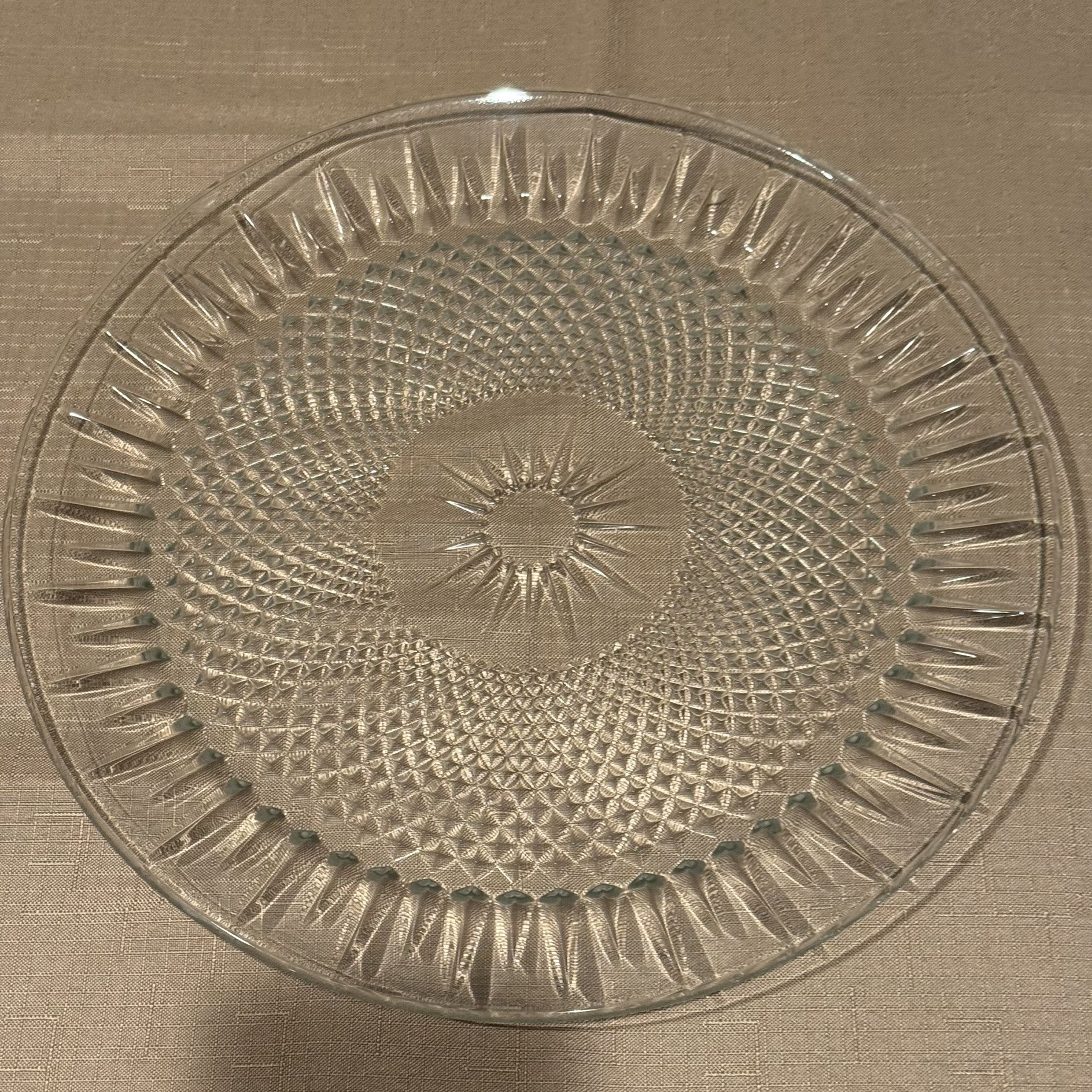 Clear Glass Diamond Pattern Round Platter 12 1/2” round. Excellent condition
