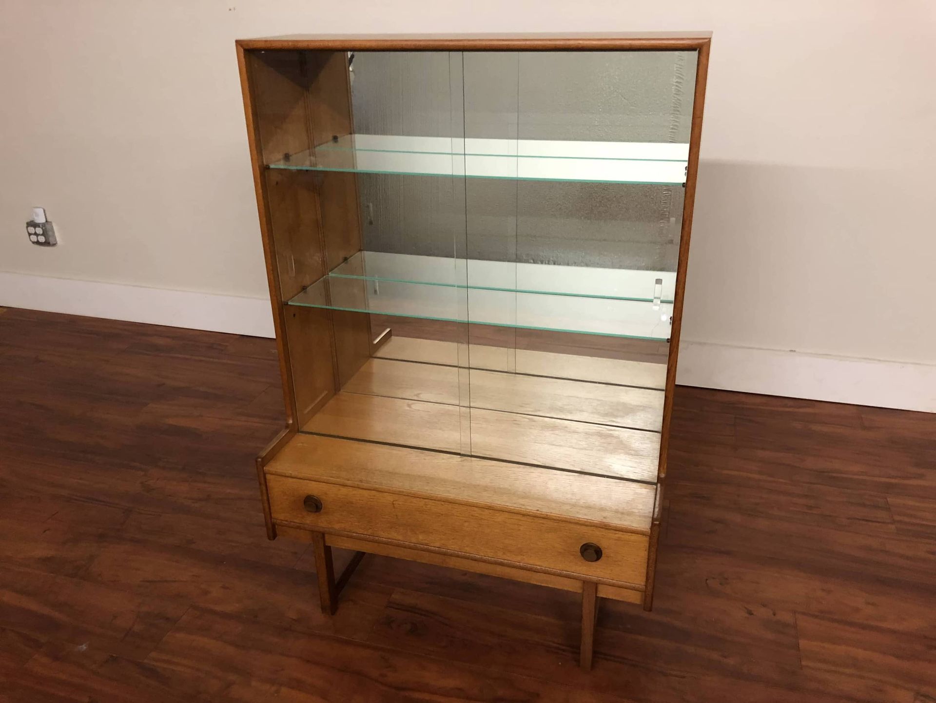 Vintage Mid Century Teak Mirrored Display Case - Many More Items In Stock!