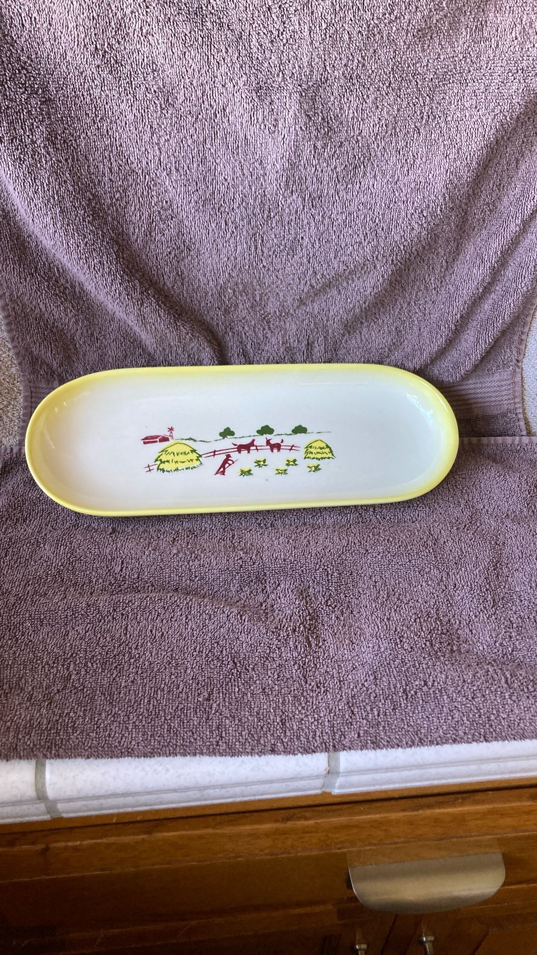 Brock of CA farmhouse pattern oblong serving plate. Measures approximately 12 x 4 1/2”. Excellent condition.