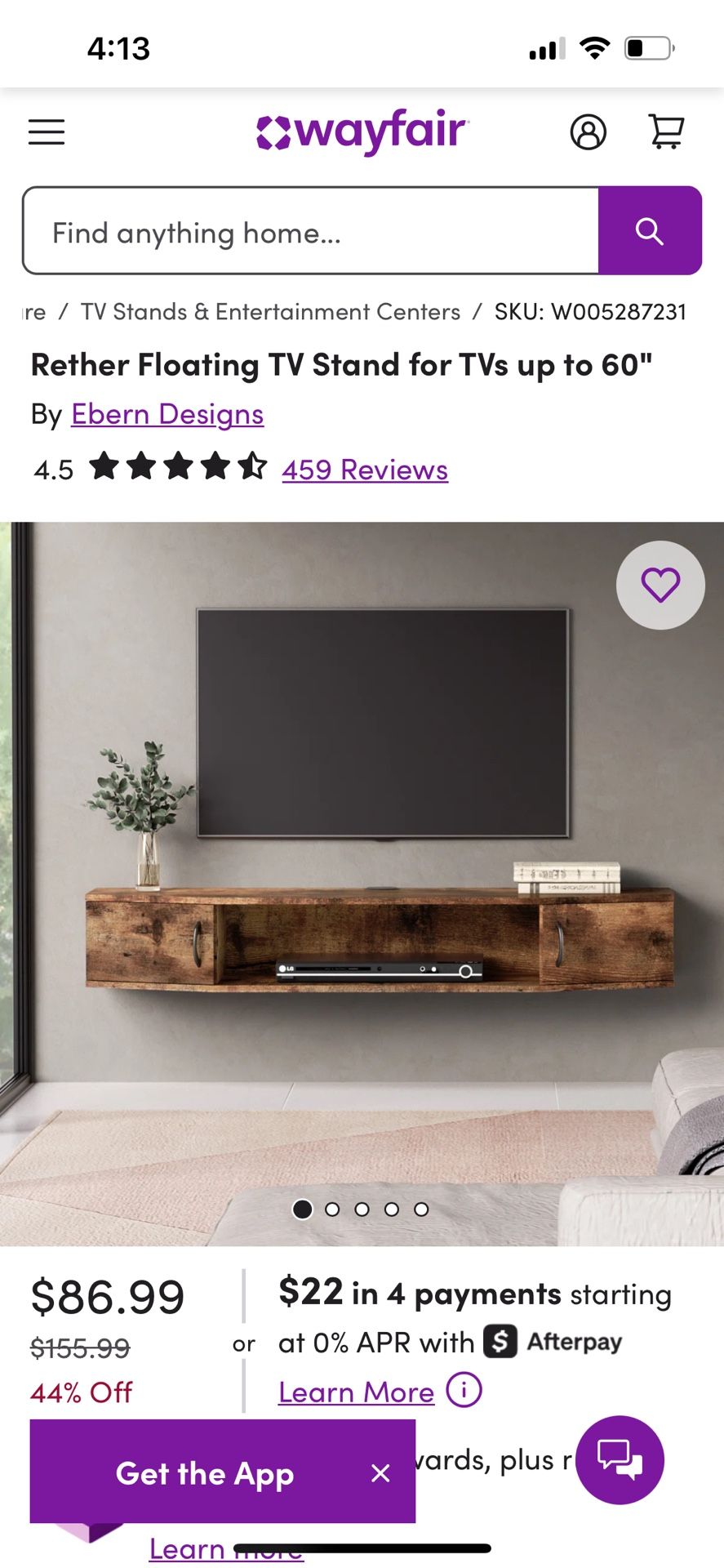 New In Box Floating Tv Stand