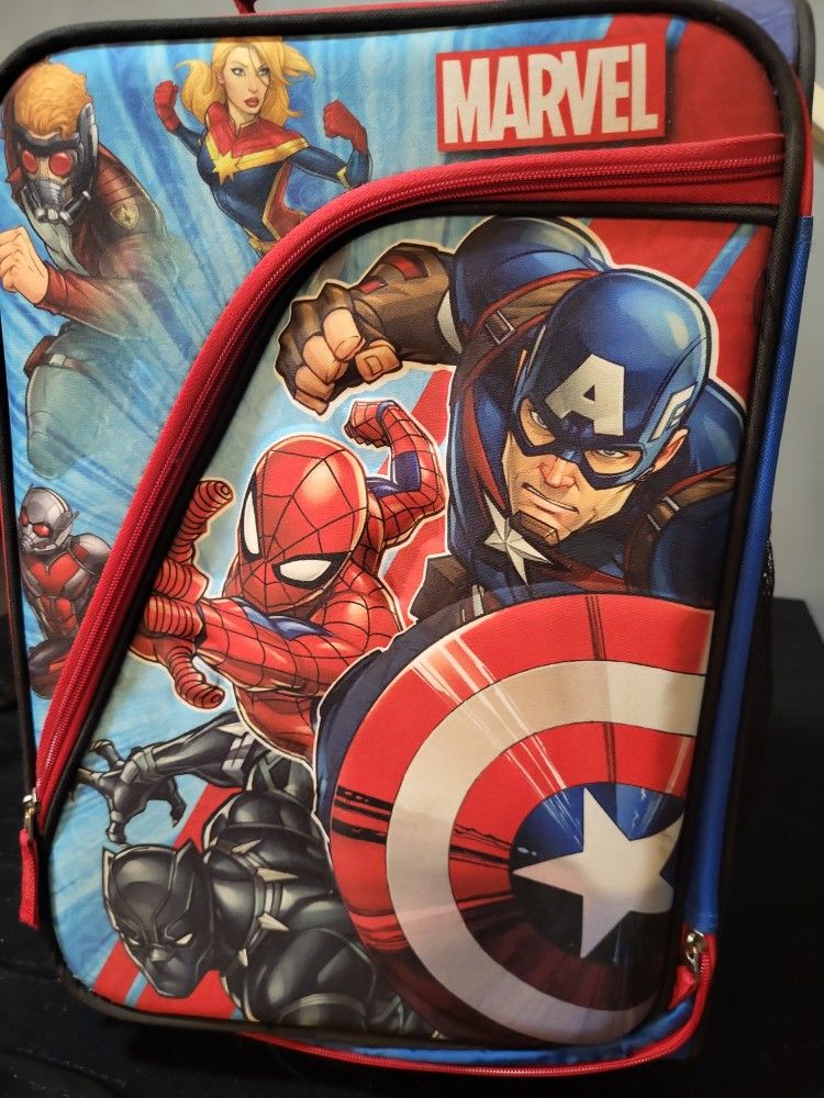 Very clean on the inside and out. Outside front zipper pocket. Spacious main compartment. Mesh pocket on side. The handle extends.