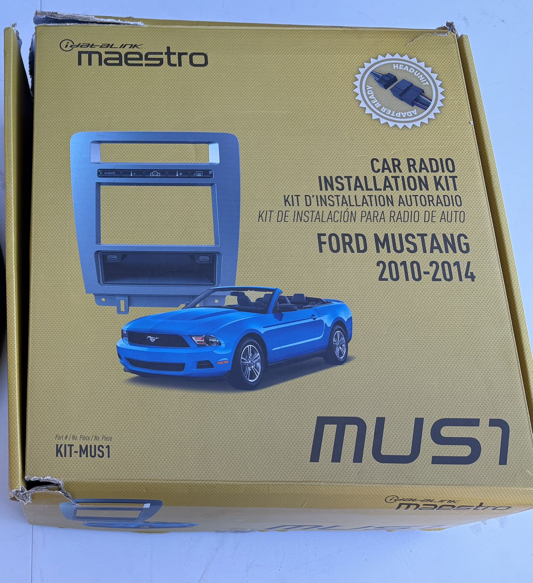 Touchscreen stereo upgrade for 2010–2014 Ford Mustang. Includes: • Large touchscreen head unit • iDatalink Maestro MUS1 installation kit • Wiring harnesses • Climate control integration panel • RCA and camera connections • Mounting clips and hardware Designed to upgrade the factory Mustang radio to a modern touchscreen system with: • Apple CarPlay / Android Auto capability • Backup camera input • Bluetooth audio • Media playback Condition: Used but in good working condition.