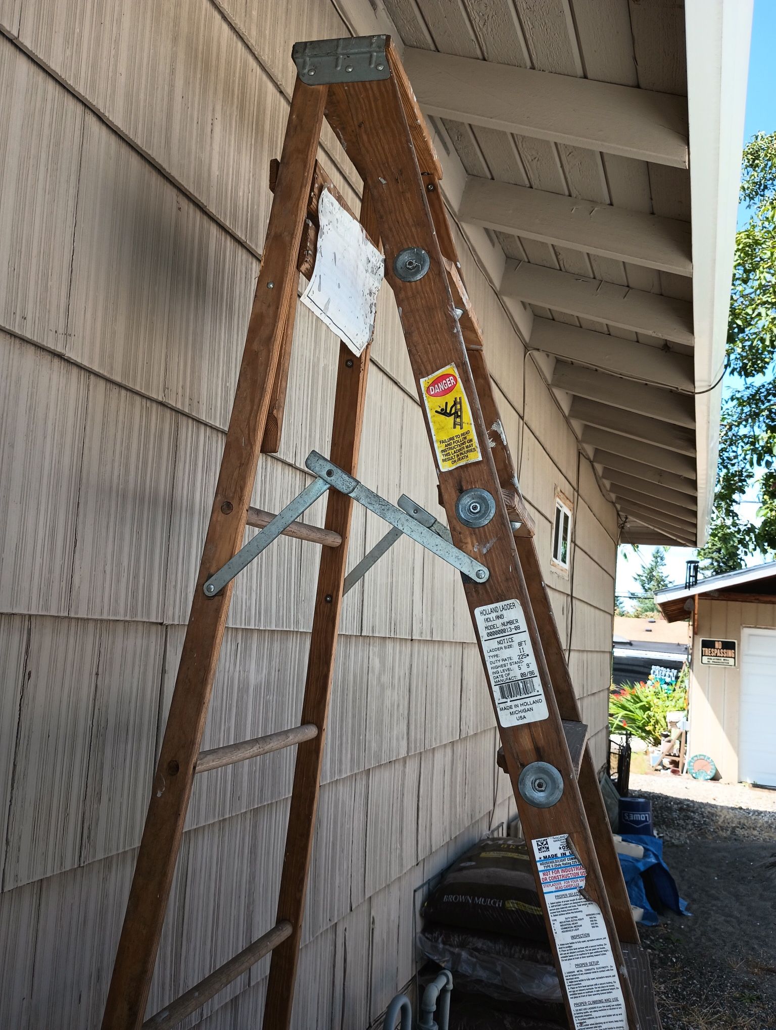8 foot wood ladder. Nothing wrong, just don’t want my dad climbing it.