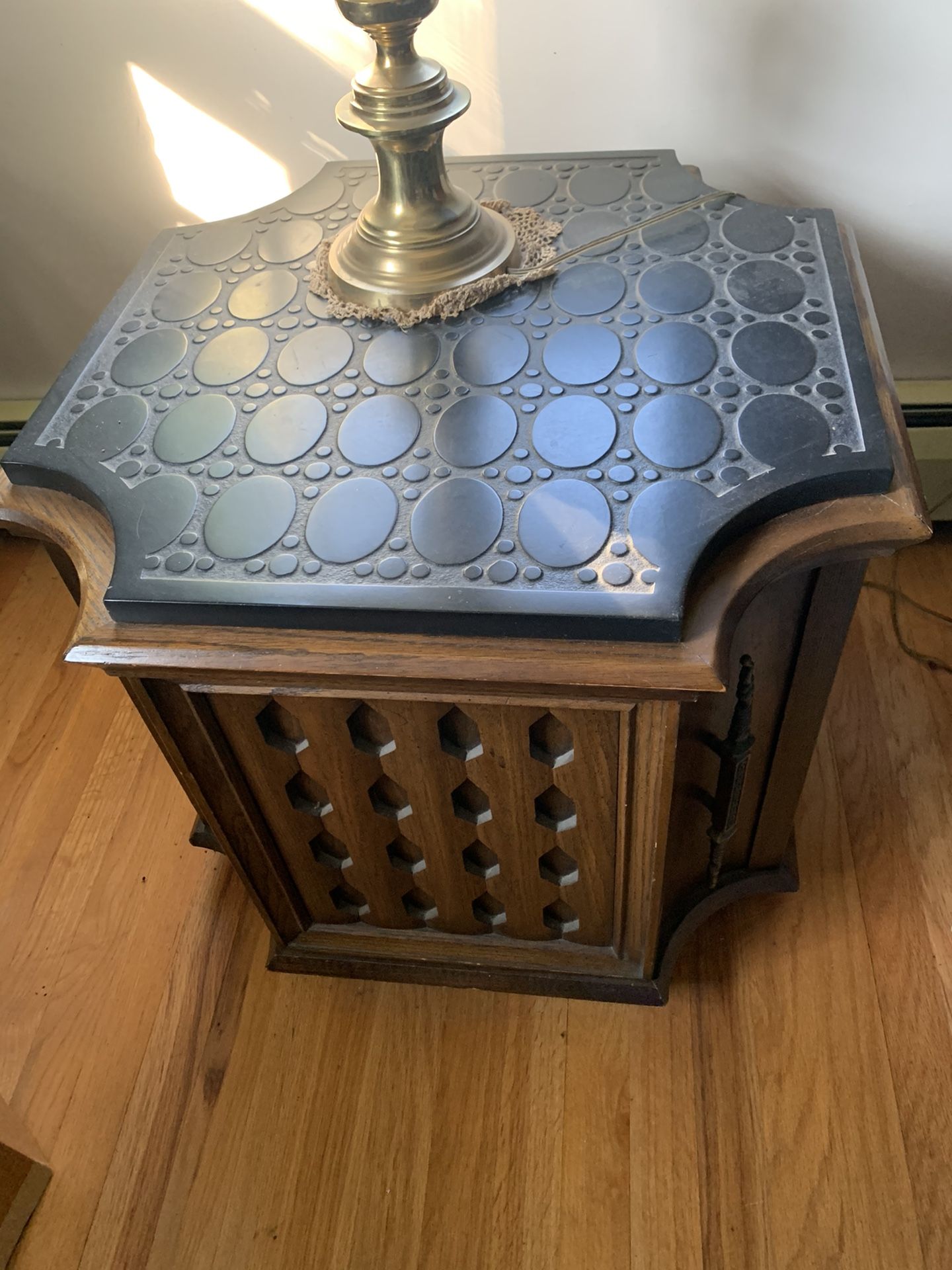 Mid century oak coffee table and 2 end tables- oak with slate tops