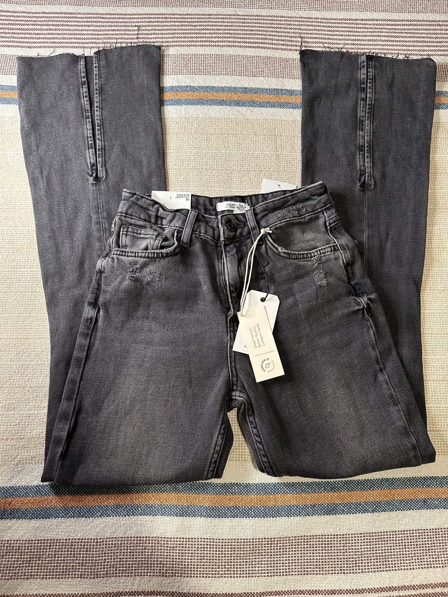 Crafted from 10% hemp, this pair of bootcut jeans features a mid-rise waist, whiskering, five-pocket construction, zip fly with button closure, distressing on the knee, back slits, a flare leg, and raw-cut hem. - 89% cotton, 10% hemp, 1% spandex - Model is 5'7" and wearing a Size 25