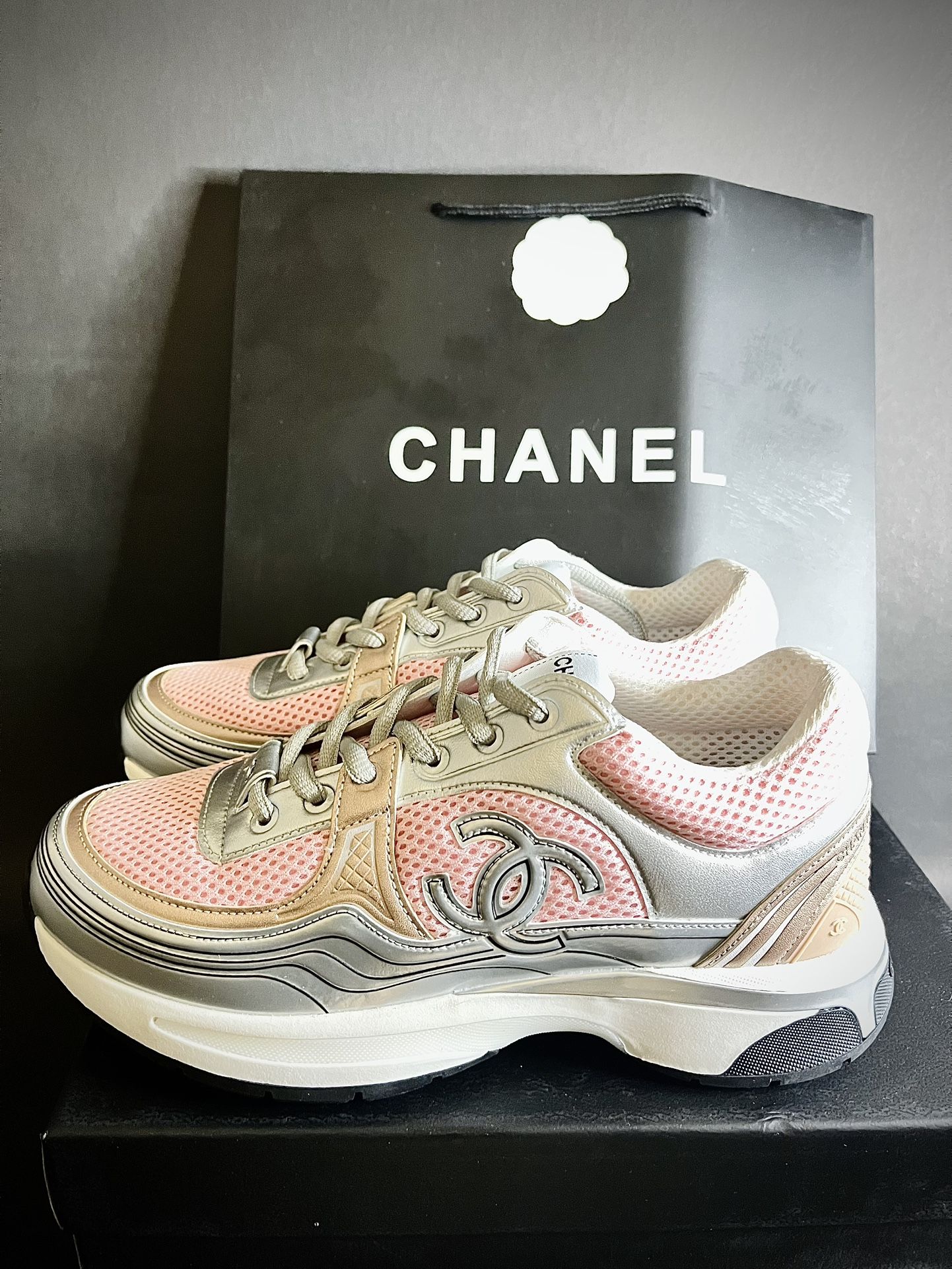 Don't show up to the brunch in basic sneakers. 🥂 Womens Size 9 Chanel CC Trainers—The 'Birthday Girl' essentials’ The Weekend Move: The Fit: High-tier materials and neutral tones. They go with everything from a silk skirt to your favorite cargos. The