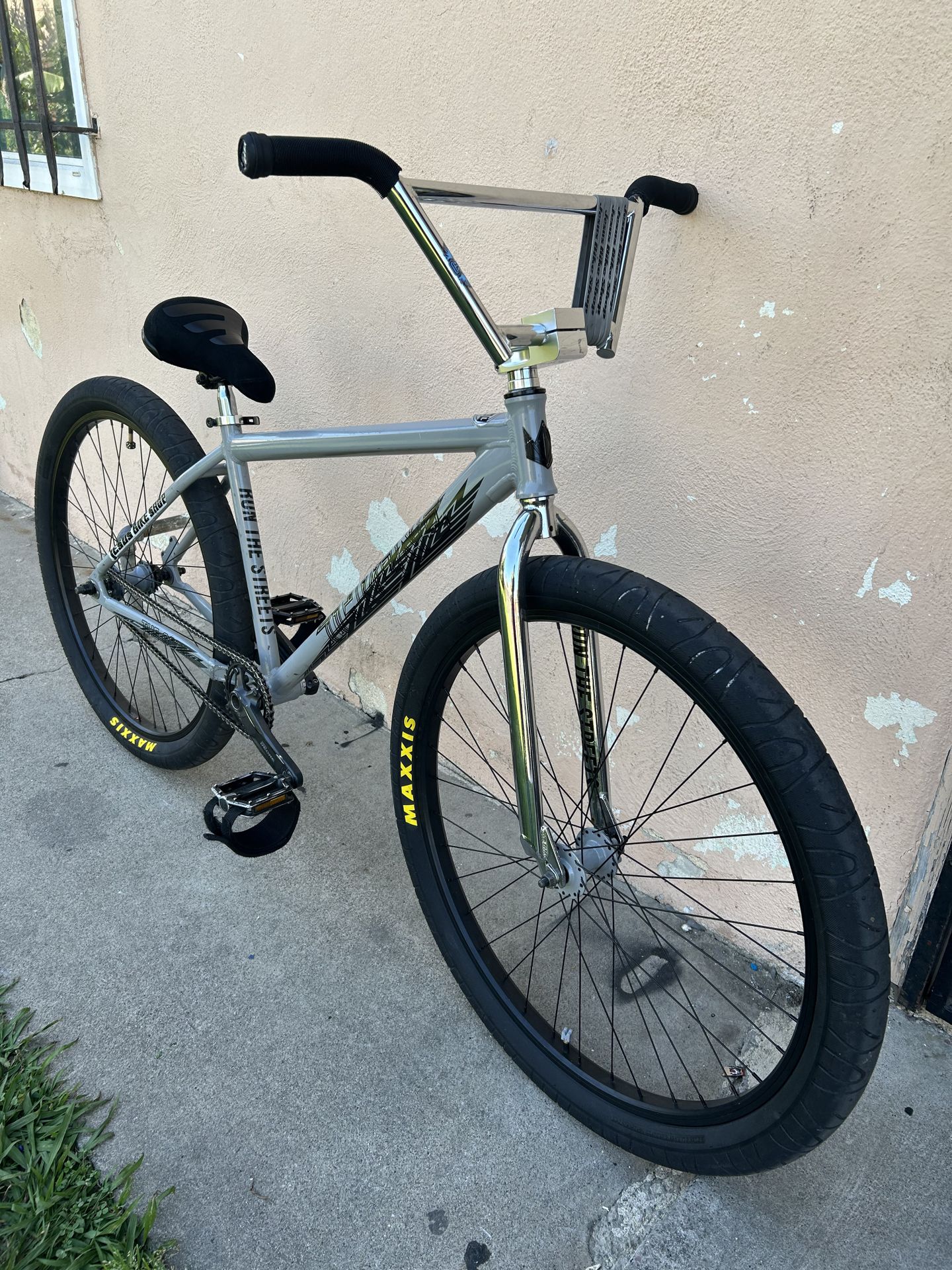 Throne coreline 29er A1. Mainly looking for Full trades but frame trade offers are welcome. ( NO HOAGIES ) Part list: Chrome Oaklands Black odi grips Chrome SE stem Chrome run the streets fork Front coreline Rim Maxxi hook worms 80% life Mafia logo seat black Chrome superslant Deore 32T New welgo straps Coreline black wheel with loud freewheel Half link chain brand new.