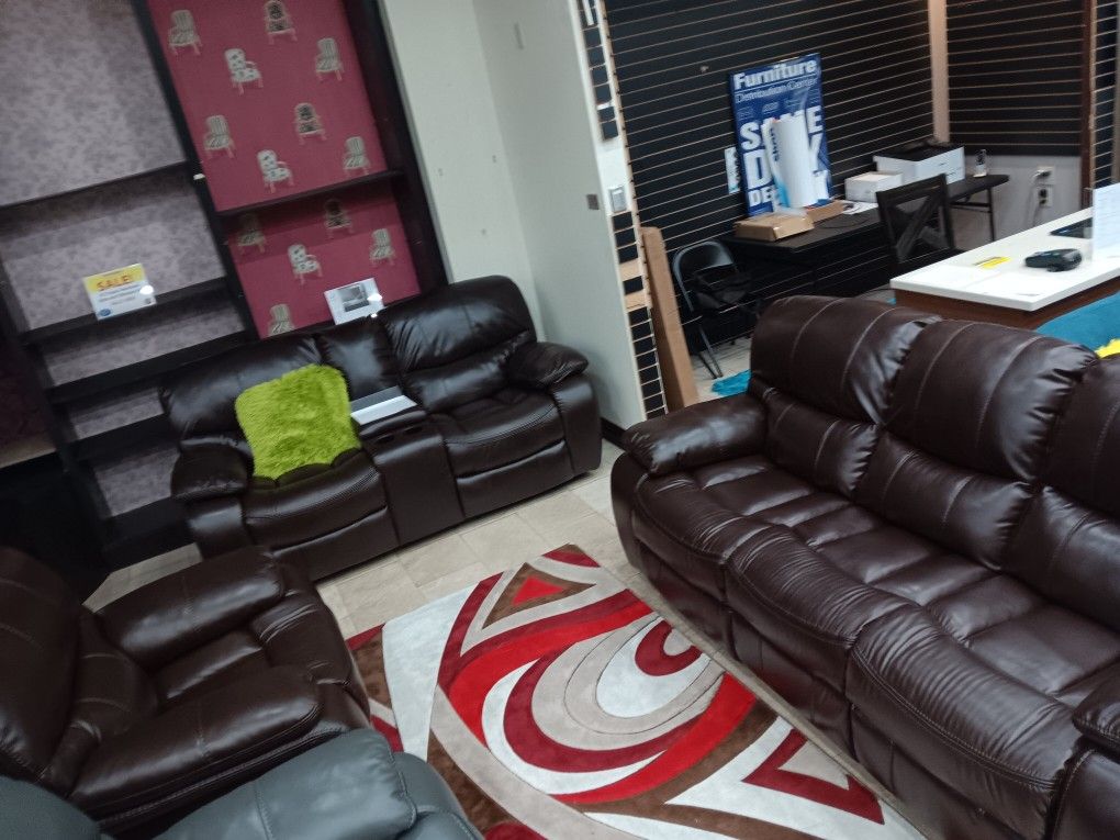 *Weekend Special*---Madrid Brown Leather Reclining 3 Piece Living Room Sets---Delivery And Easy Financing Available 👍
