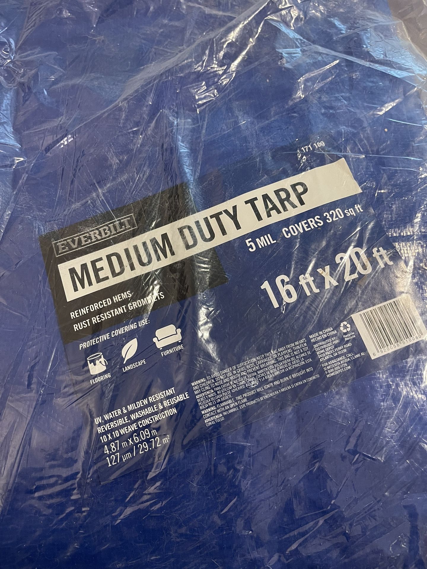 Top Rated Everbilt 16 ft. x 20 ft. Blue Medium Duty Tarp Cash only 30.00 Pickup in Denton