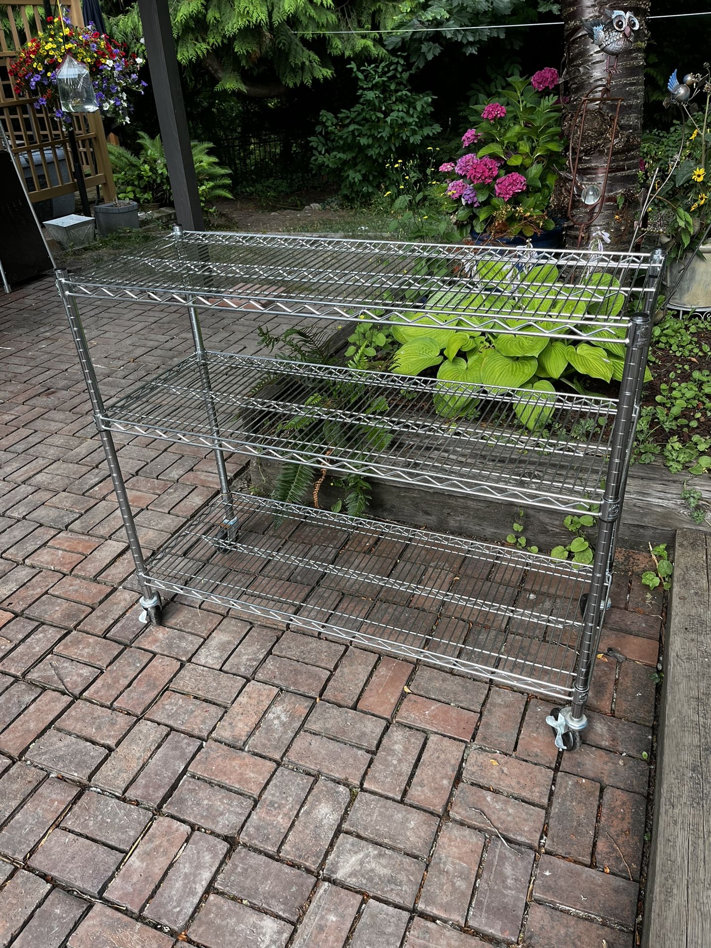 Metro rack adjustable on casters. Perfect condition. 48” wide x 41” tall x 18” deep