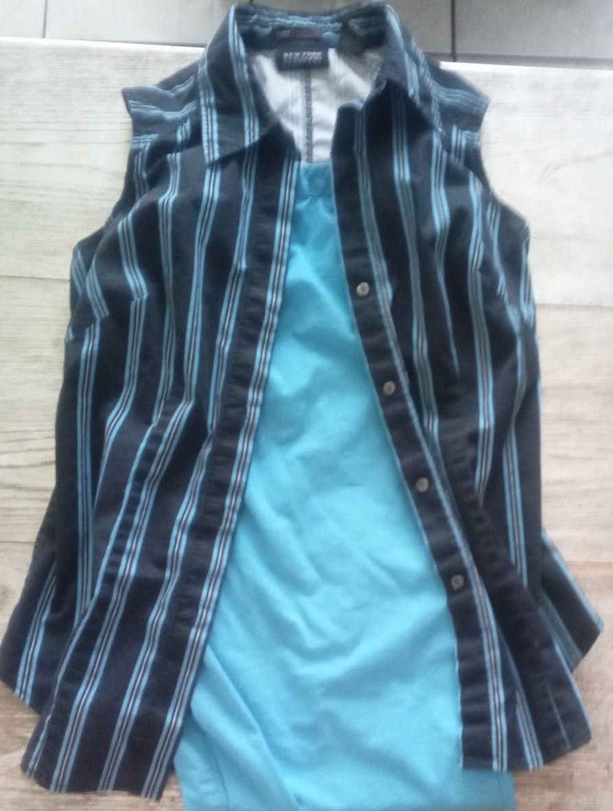 New York Company (city stretch). Women's Capri pants (slide clip and button, (2 front side pockets). with button up tank top collared shirt outfit set. Size 14, M. Casual but dressy. great condition, like new.