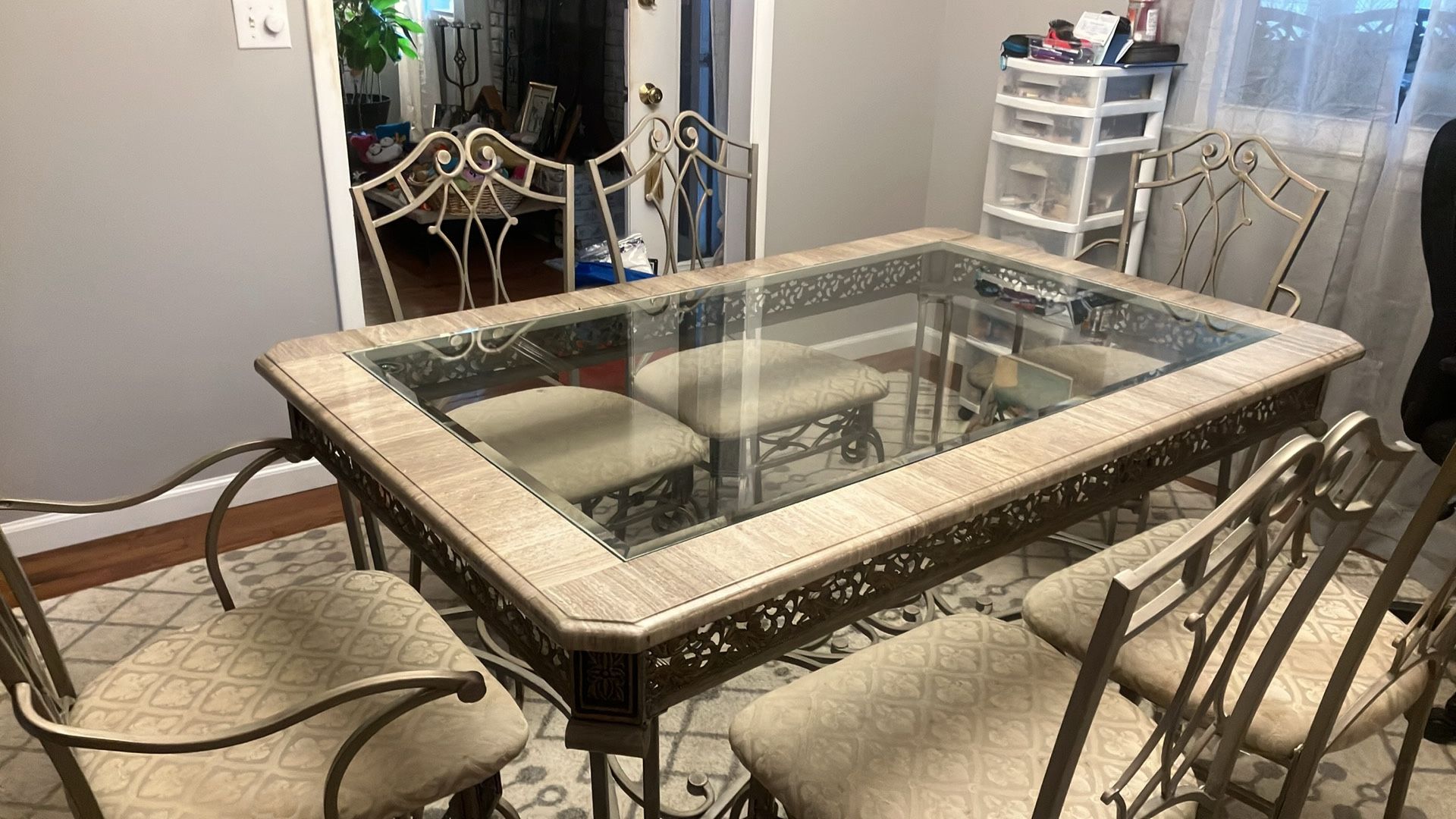 Wrought iron and glass top table Plus 6 wrought iron chairs For 300.00 in Fort Walton beach Florida