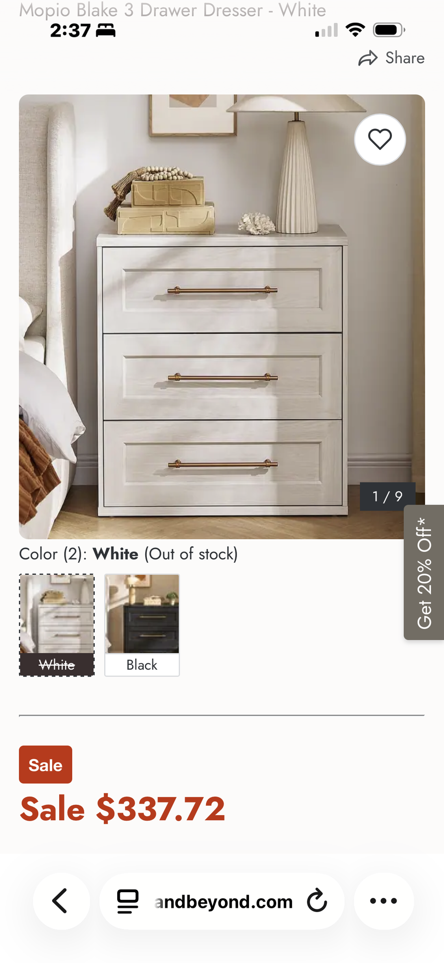 Brand new in box unassembled. Retails for $337.72. White 3 drawer dresser with accent brass handles. Has recessed panel frame and 3D natural wood grains. Dimensions are 31.5" W x 32.3" H x 15.6" D. Drawer dimensions are 30" W x 13.1" D. Top load capacity is 100 lbs, each drawer holds 30 lbs. Features an interlocking mechanism to prevent tipping and a grounded heavy base. Unassembled. Still in box