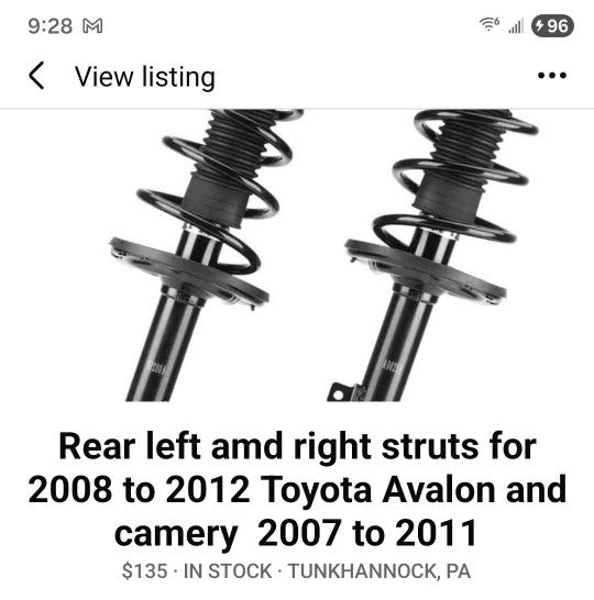 Rear Left And Right Struts For 2008 To 2012 Toyota Avalon And 2007-2011 Camery