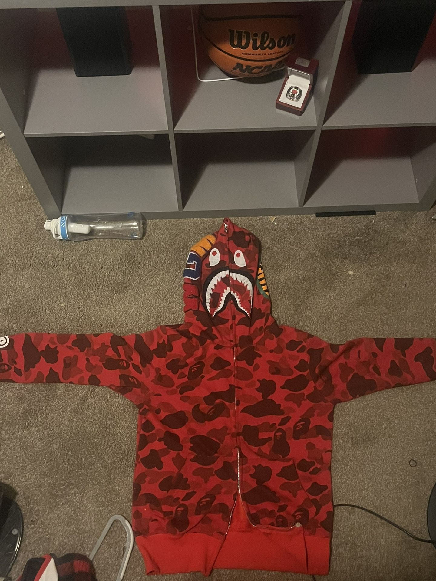 Bape camo shark hoodie in red and black didn’t want it anymore worn like once