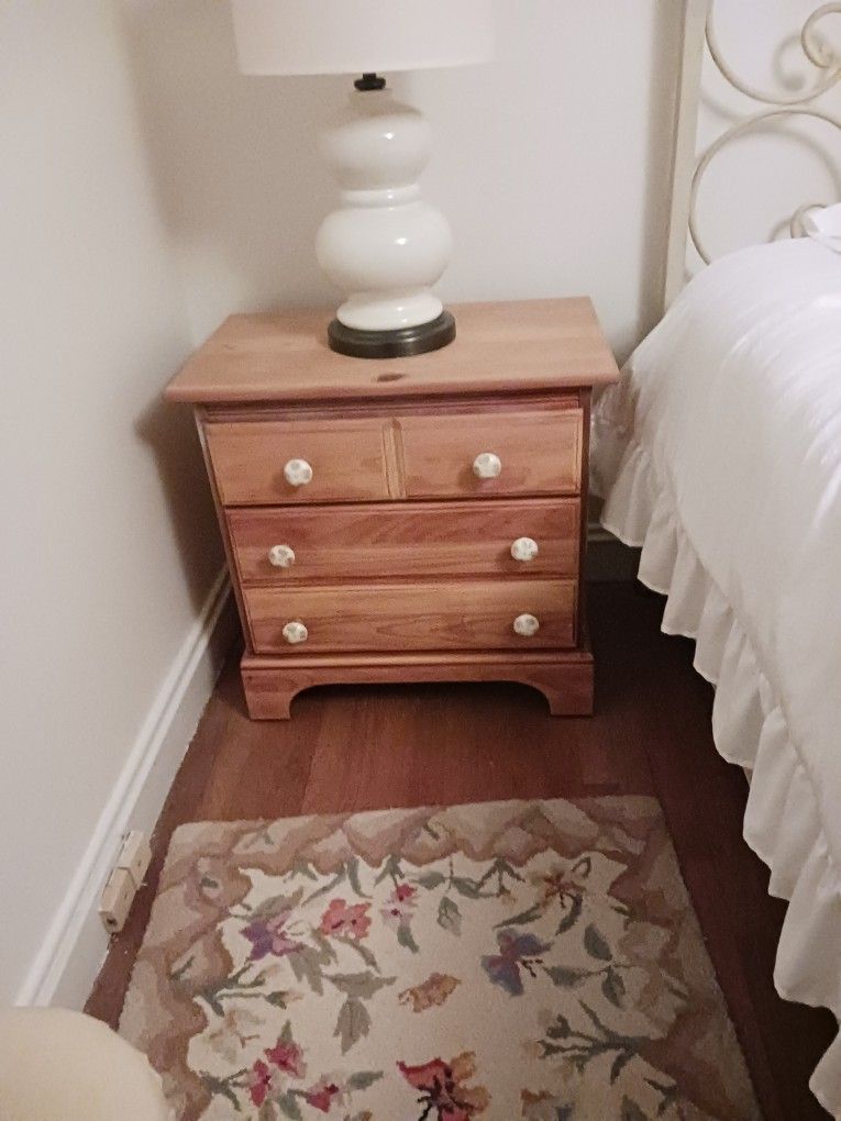 Beautiful solid pine wood 4 piece bedroom furniture. $25.00 each.