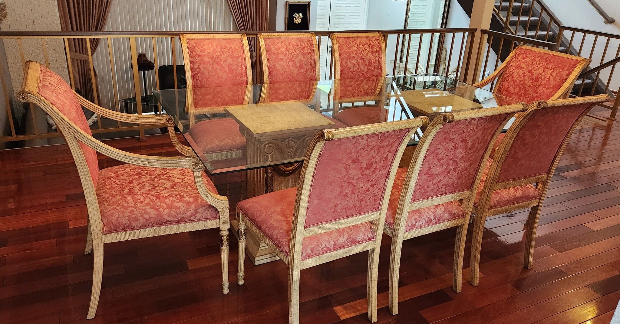 FORMAL DINING ROOM SET FOR 8 CUSTOM MADE TO ORDER GLASS TOP TABLE 7FT x 4FT 2 DINING ARMCHAIRS 6 DINING CHAIRS