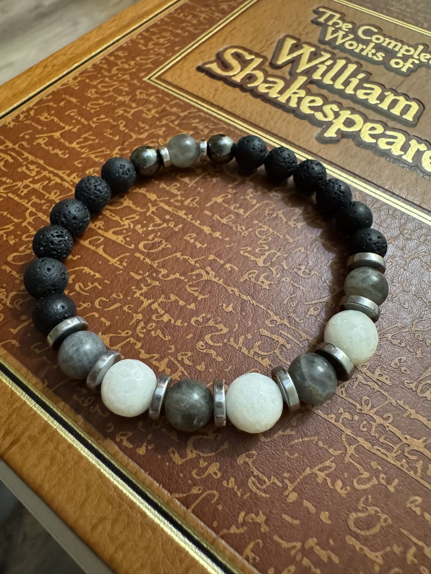 Hematite, Lava, Labradorite & White Quartz Bracelet