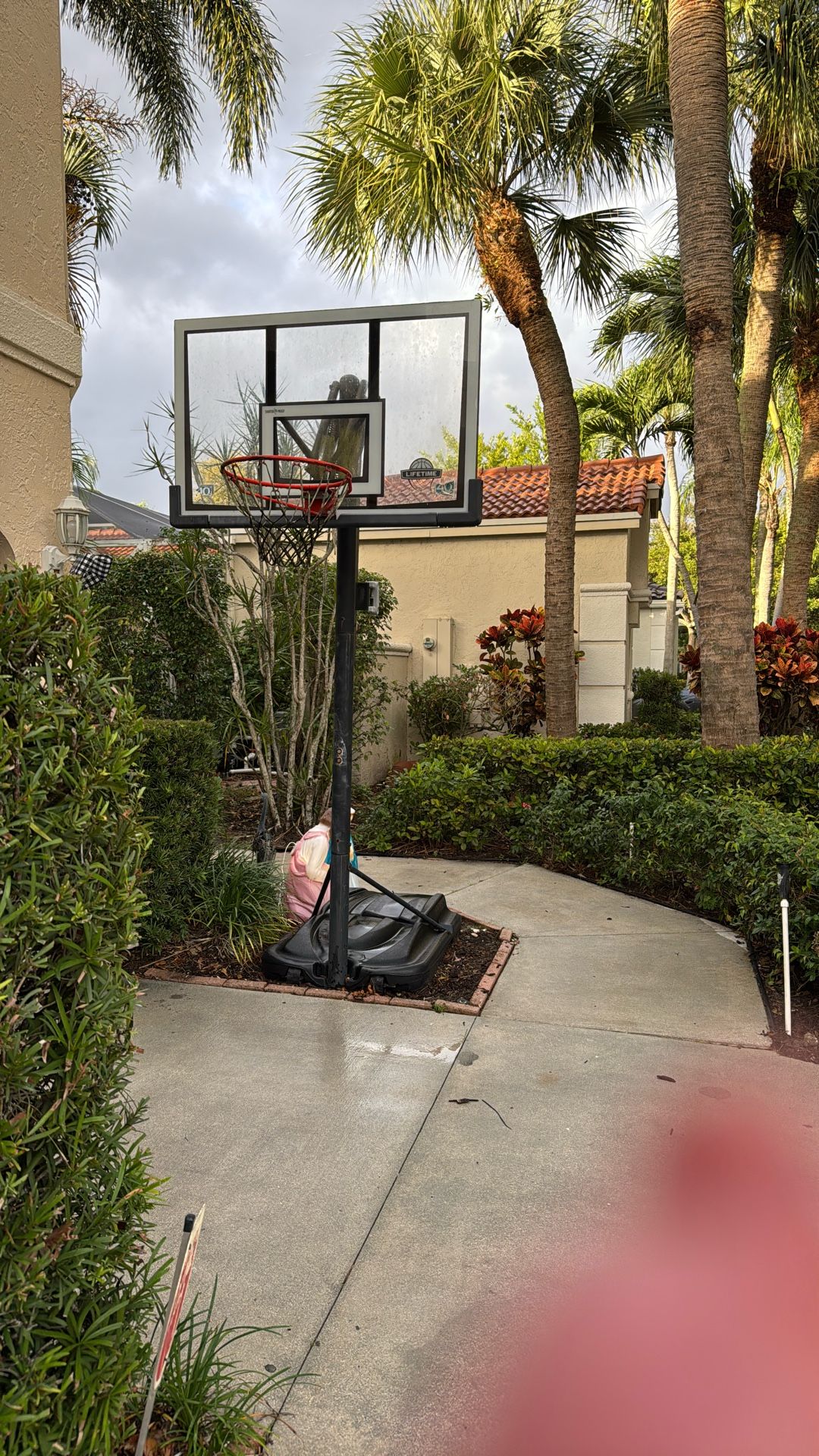 10-12 years old. Needs a new net. Adjustable 7-10 feet. Free but pick up required.