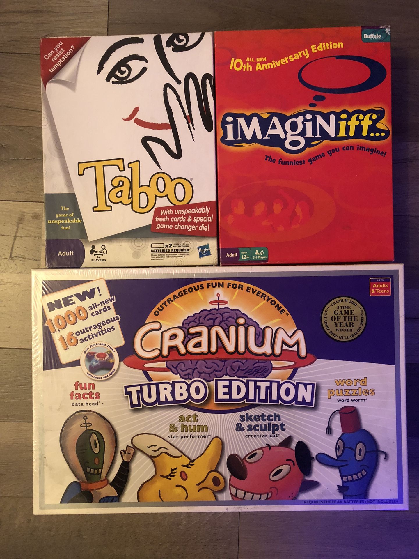 Brand new still in plastic- Cranium Turbo Edition Gently used games- Taboo Imaginiff Asking $20 OBO