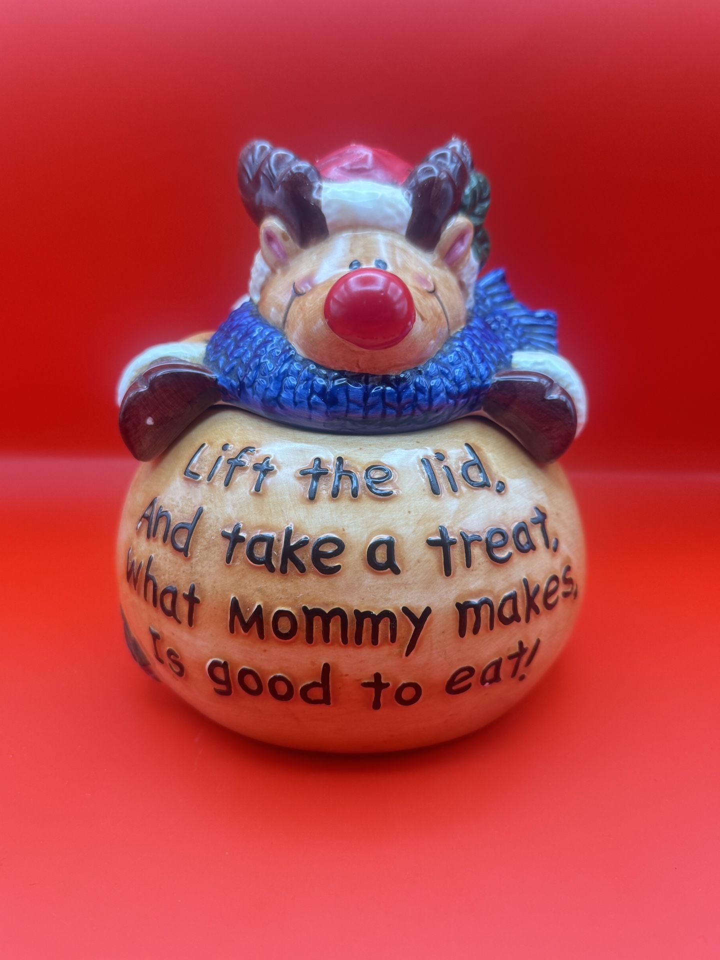 Ganz Ceramic Reindeer Christmas Treat Cookie Jar W/Lid Decoration Just Adorable