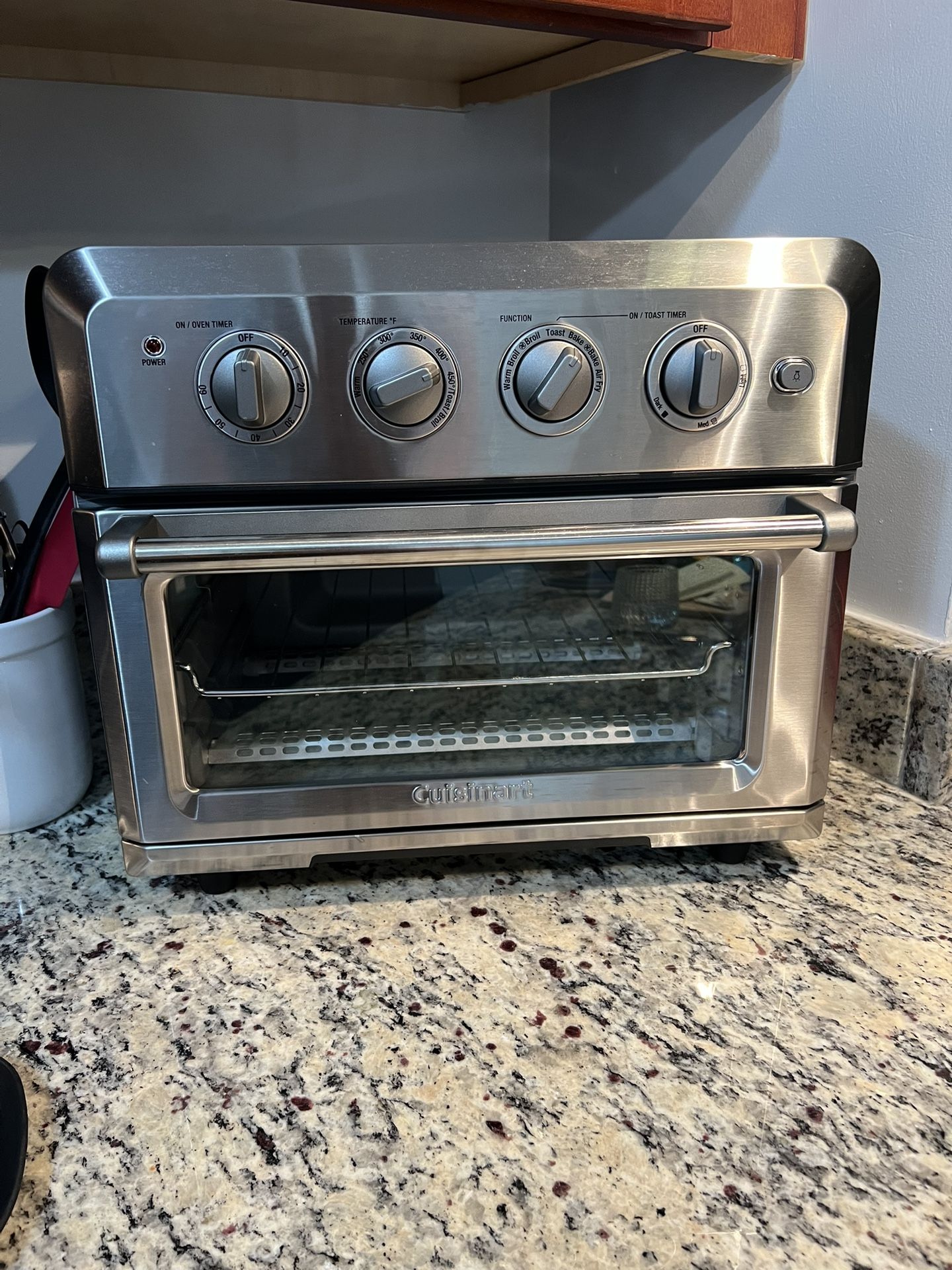 Toater Oven and Air Fryer with a baking tray, grill and fryer basket.