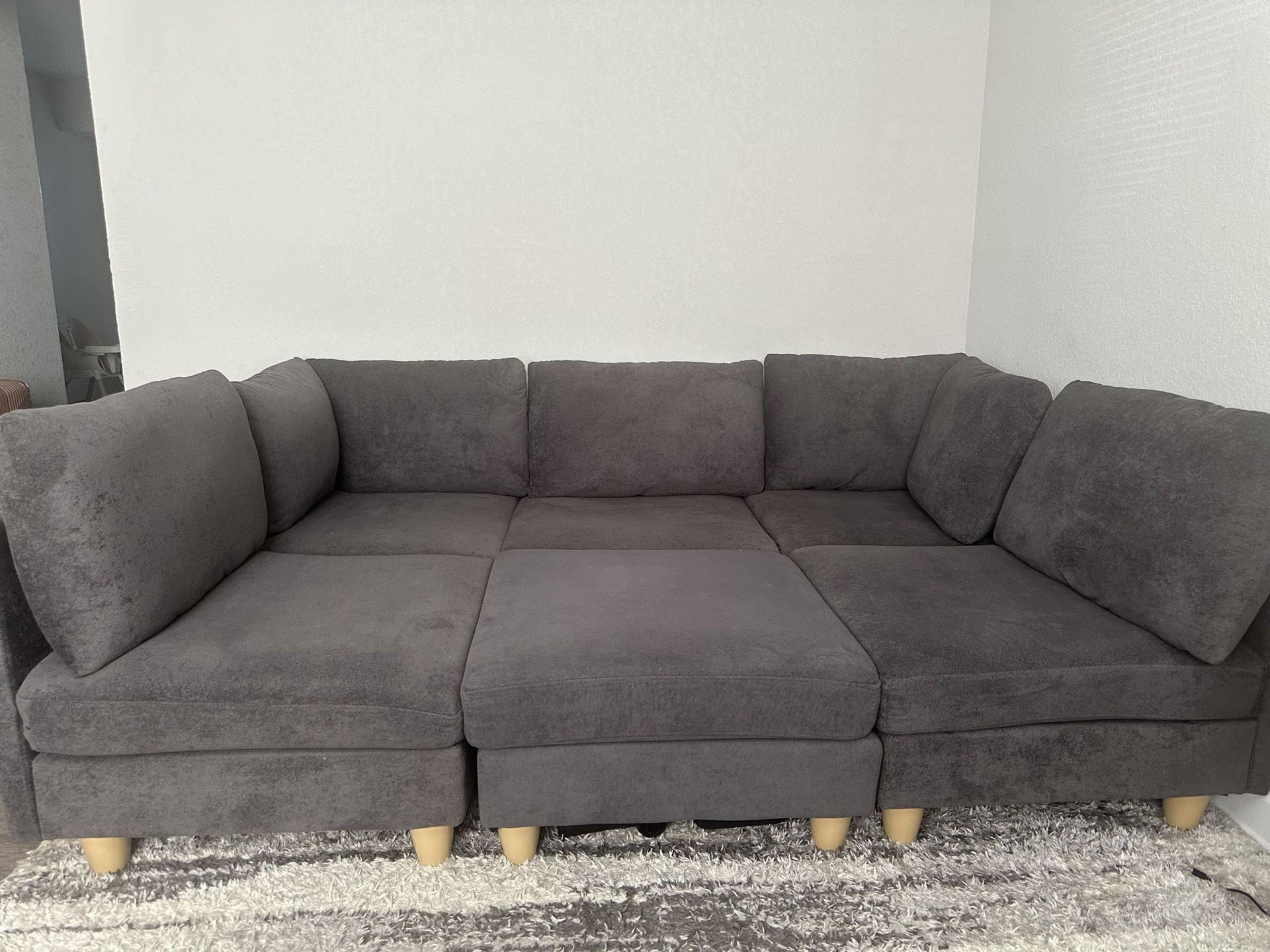 Gray sectional couch with moveable pieces5 months used little to no wear and tear Pick up only It is priced cheaply because I need it sold quickly. I’m moving from Virginia back to Dallas, Texas.