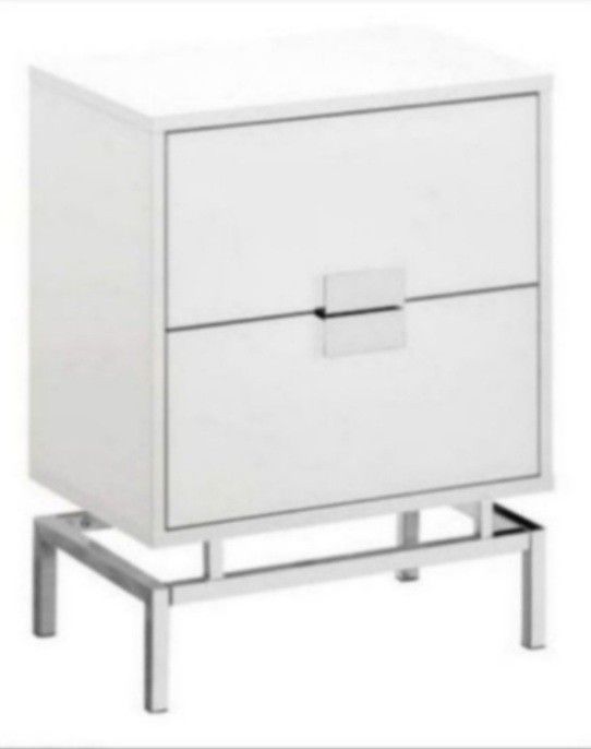 Monarch accent or side/ end table can be night stand. Modern style, white glossy finish with chrome legs. Excellent condition. Used for a few month. Asking $160 Crate and barrel, pottery barn, dania, Restoration hardware, ikea, kasala