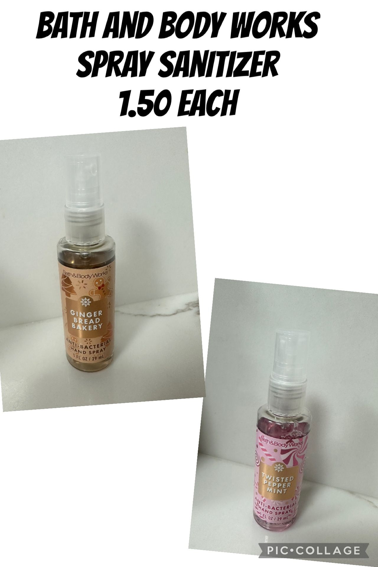 1.50 each Bath and Body Works Spray Sanitizer Brand new - retails 3.95 Metairie porch pickup Cross posted •Twisted Peppermint •Gingerbread Bakery