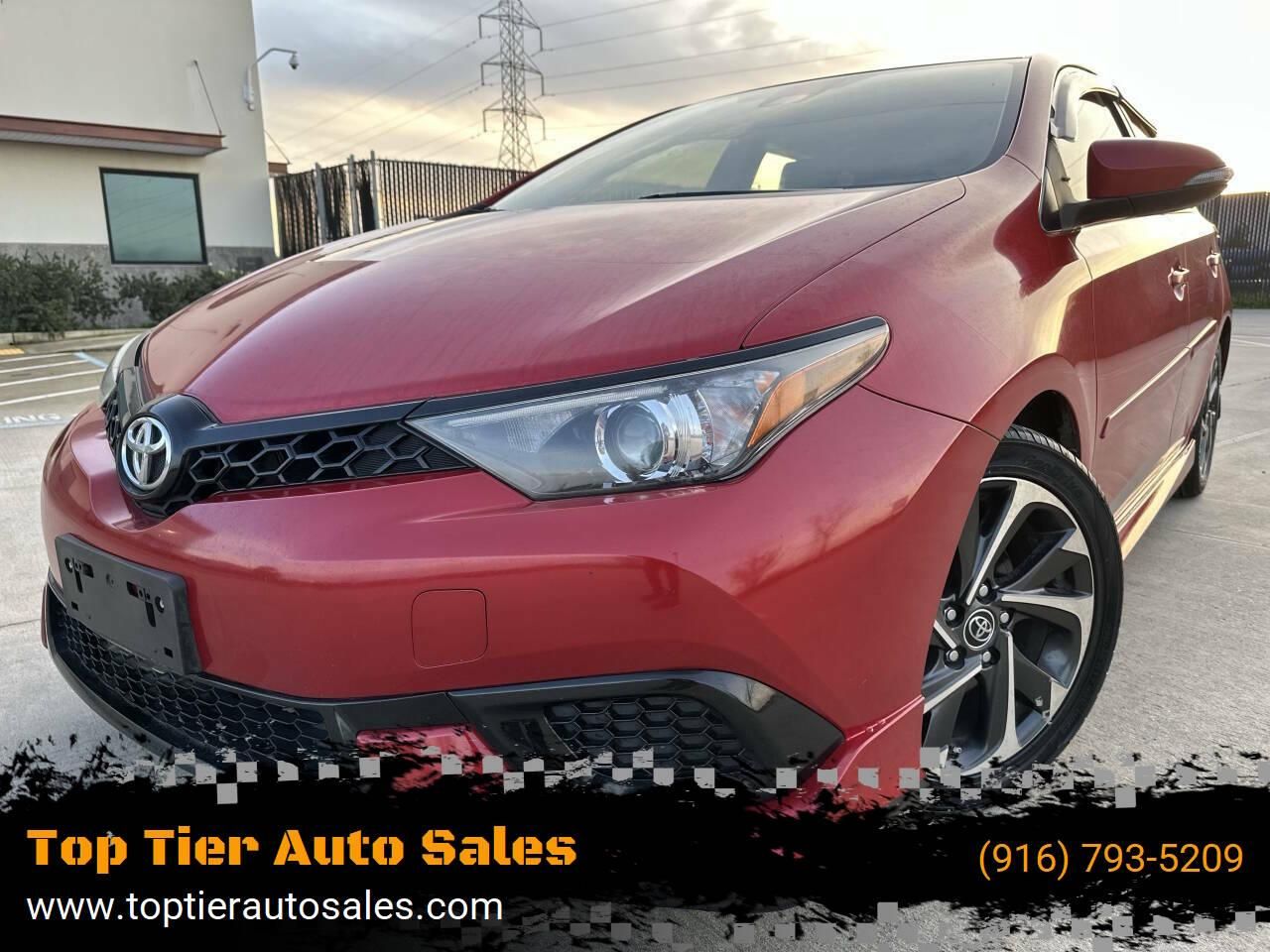 The 2017 Toyota Corolla iM at Top Tier Auto Sales is a stylish, reliable compact hatchback that blends sporty looks with everyday practicality and Toyota's renowned durability. This European-inspired 5-door hatch features a bold, aggressive design with a honeycomb grille, sleek LED daytime running lights, LED taillights, and a chrome-tipped exhaust for a premium, athletic stance. Under the hood, it packs a responsive 1.8L 4-cylinder engine delivering 137 horsepower and 126 lb-ft of torque, paired with (typically) a smooth CVT automatic for effortless commuting—or opt for the engaging 6-speed manual in some models. Expect excellent fuel efficiency around 28-31 MPG combined, making it a smart choice for daily driving or longer trips. Inside, enjoy a comfortable, well-equipped cabin with supportive seats, dual-zone automatic climate control, a Pioneer 7-inch touchscreen with Bluetooth streaming, USB/iPod connectivity, backup camera, and intuitive controls. Safety highlights include Toyota Safety Sense C (forward collision warning, lane departure alert), stability control, traction control, and more. With versatile 20.8 cu.ft of cargo space (expandable via 60/40 split-folding rear seats), it's perfect for errands, groceries, or weekend getaways while offering a fun-to-drive feel thanks to its independent rear suspension and precise steering. This Corolla iM is a fantastic value—reliable, efficient, and loaded with features without the high price tag of newer models.