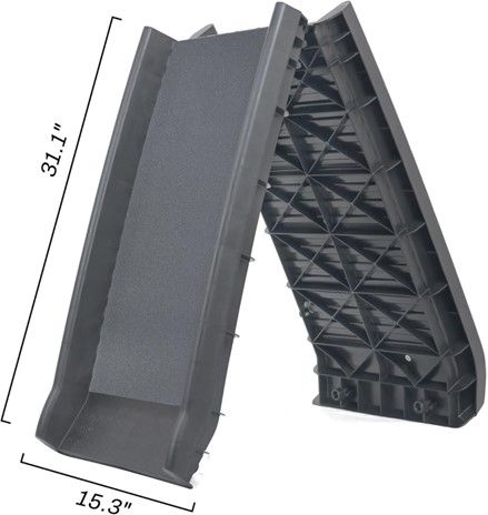 Elevon Folding Pet Ramp, 62 Inch, Portable Lightweight Dog Cat Ramp · USE FOLDING RAMP - to help your best 4 legged friend get in and out of your car without having to jump, leap, or get carried up / down · DURABLE - This strong ramp is independently tested and rated to support 150 pounds · LIGHTWEIGHT: Weighs only 10 pounds and is easy to carry and lift in and out of the car · HIGH TRACTION: the high traction surface helps your furry friends from slipping or falling when walking on the ramp · FOLDABLE: Folds in half to let you conveniently store it in your vehicle. SIZING: Folding ramp measures 62.2 inch L X 15.3 inch W