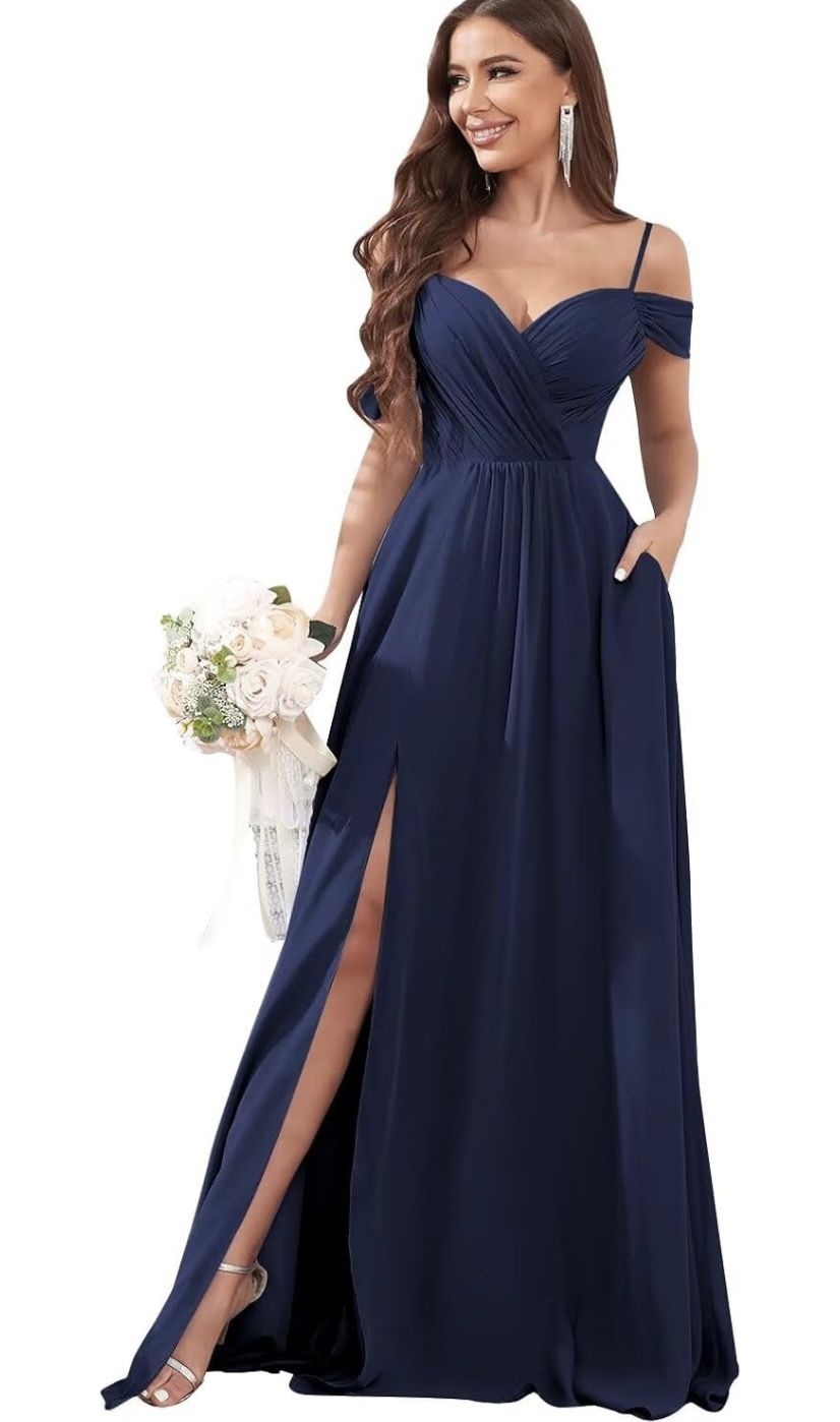 Navy blue bridesmaid dress unaltered, size 8. Brand new never worn