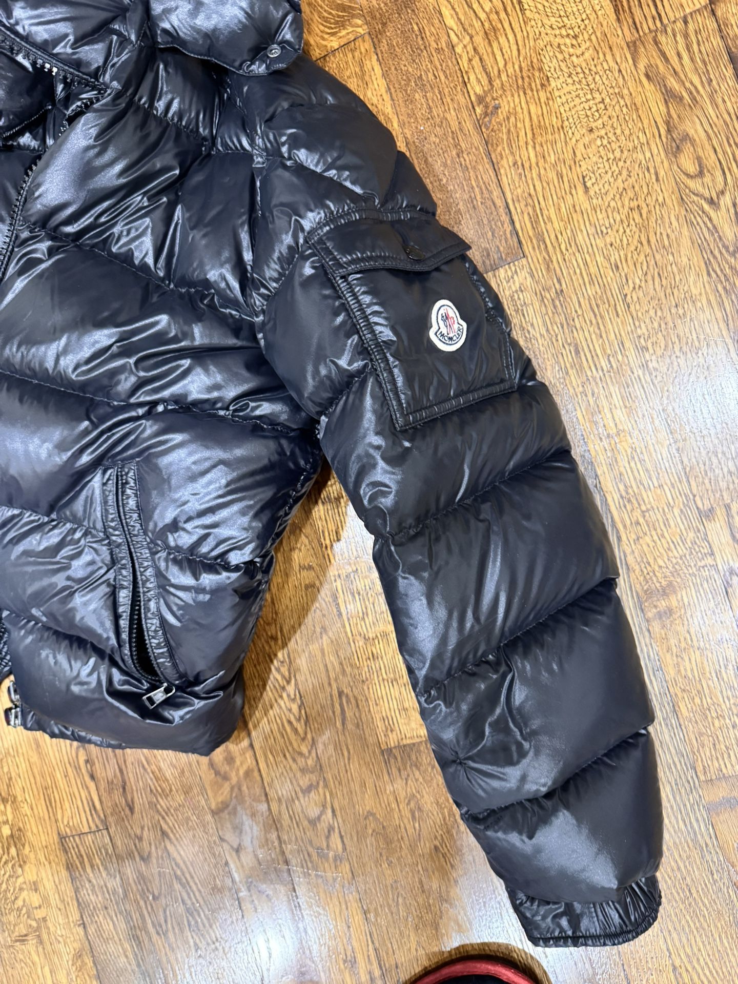 Maya Moncler jacket , fits like a L it’s a size 4 I’ve worn it 3 times at most and just took it out the cleaners . It was bought at 1800 so 1000 off is more than fair if your gonna offer anything below 700, don’t. CASH ONLY