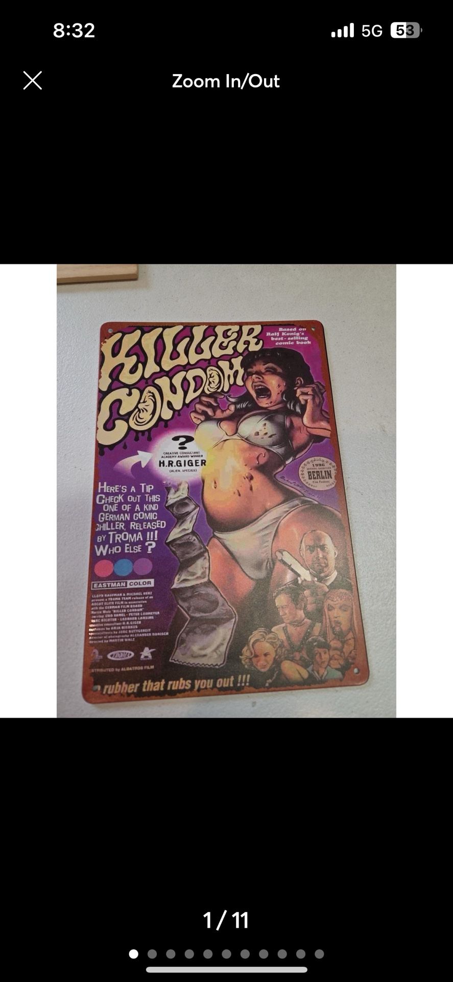 Killer Condom Rustic-looking Metal Sign 8x12 Comedy Horror