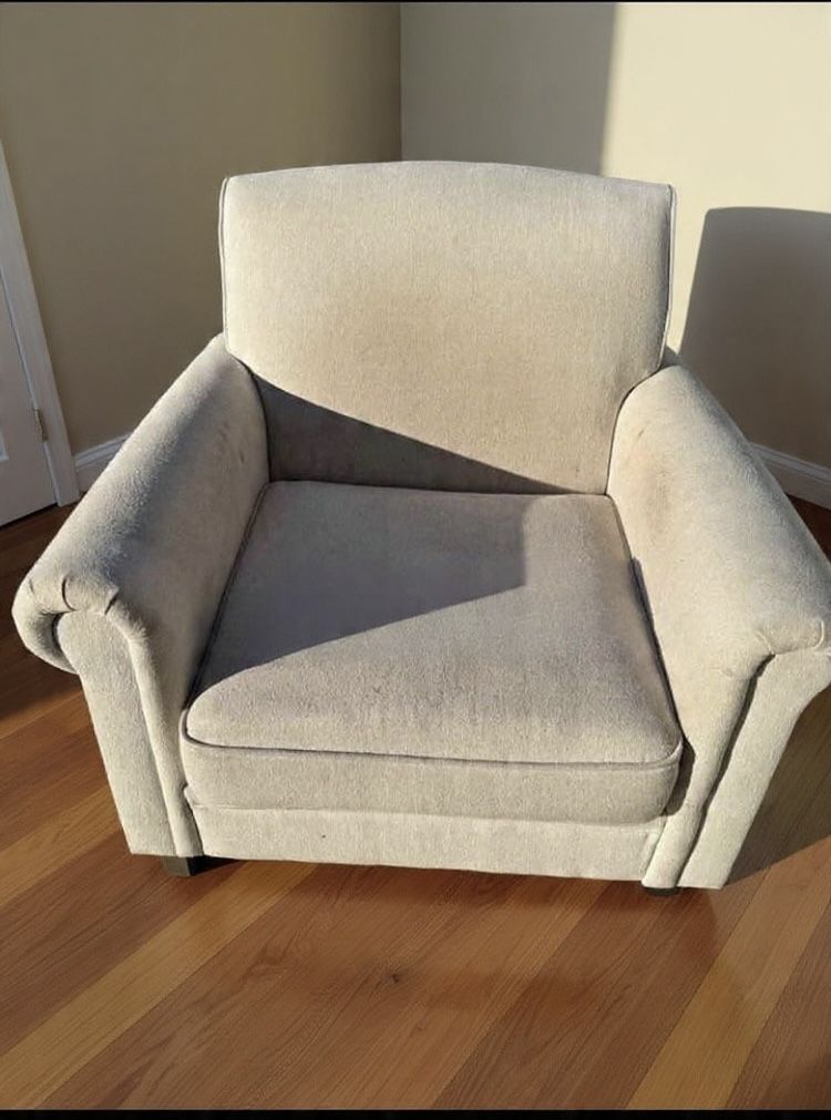 Comfy Neutral Beige Fabric Armchair - Solid Condition + Delivery Available! Cozy, classic beige armchair perfect for living room, bedroom reading nook, or home office. Rolled arms, high back for support, plush cushioned seat—really comfortable and sinks in just right. Neutral linen-like fabric that matches almost any decor. Approx. dimensions: ~35” wide x 35” deep x 38” tall (standard armchair size—can measure precisely if needed). Condition: Gently used in a smoke-free, pet-free home. Clean overall with no rips, tears, holes, or major stains. Some light wear/spots and shading from normal use (shows more in photos under certain lighting), but nothing drastic—could use a quick spot clean or vacuum to freshen up. Sturdy frame, no sagging or wobbles. Great everyday piece that’s versatile and ready for its next home! Asking $60 OBO (or $50 if local pickup same day). Delivery available within Rocklin/Roseville/Sacramento area for an extra fee (message me your zip for a quote—usually $20-40 depending on distance). Local pickup preferred, but happy to deliver to make it easy! Cash, Venmo, or Zelle. First come, first served—no holds without a small deposit. Message with questions or to arrange viewing/pickup/delivery!”